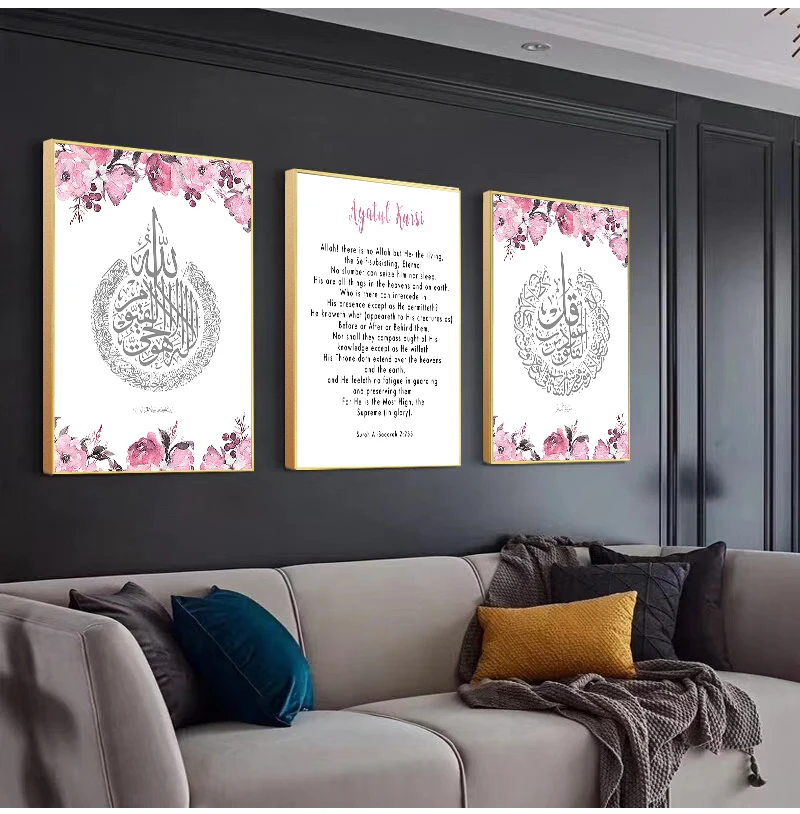 Мусульманская картина бисмилла иншаалла, с розовыми цветами, настенная живопись, Постер для гостиной, домашний декор