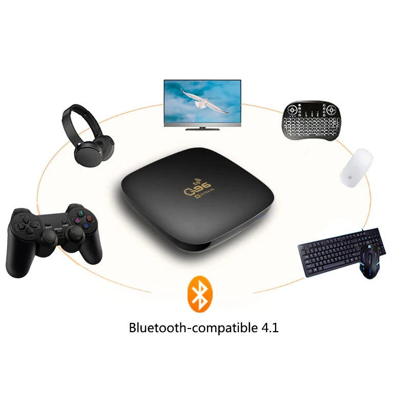 3. Двойной WiFi 2,4G / 5G и BT 4,1: ТВ-приставка оснащена 2,4G / 5G двойной WiFi и RJ45 Ethernet (100 Мбит/с) Android, который может обеспечить более сильный и Стабильный WiFi сигнал и сетевую среду. Встроенный BT 4,1 позволяет подключать мини-клавиатуру или другие устройства Bluetooth, чтобы наслаждаться Android 10.0 TV box.