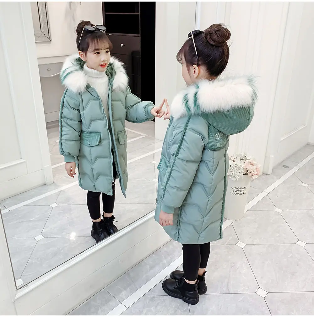 Зимняя хлопковая куртка для девочек, новинка 2021, детская модная утепленная верхняя одежда, одежда для девочек, пальто, зимняя одежда для детей от 4 до 14 лет