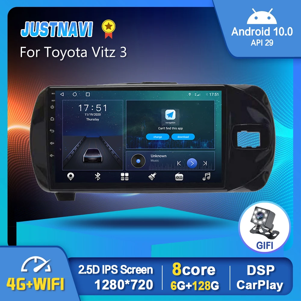 JUSTNVI Android автомобильный Радио стерео для Toyota Vitz 3 2014-2019 сенсорный экран мультимедийный плеер 9 ''Navi GPS FM Carplay BT 6G 128G