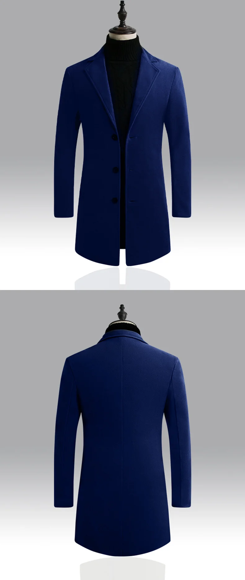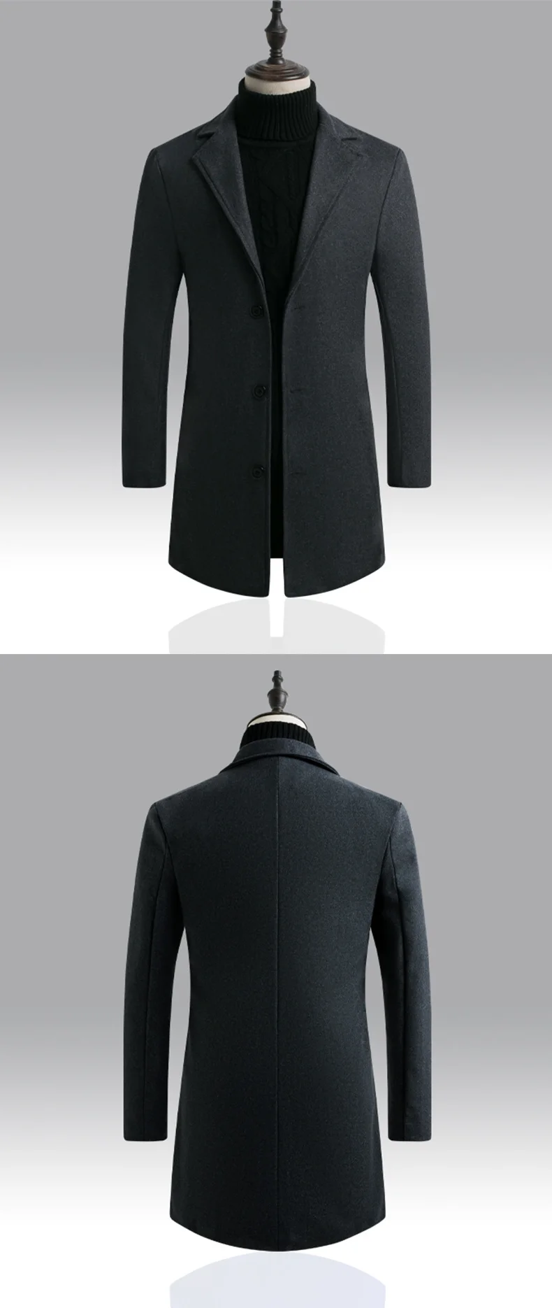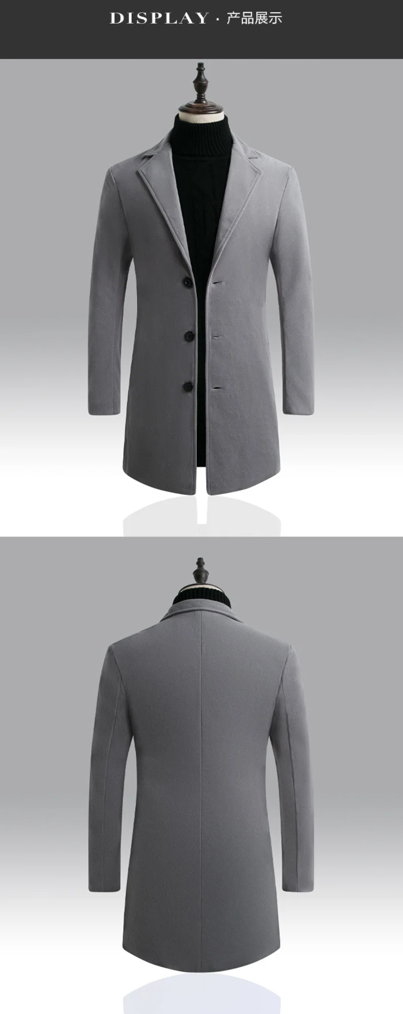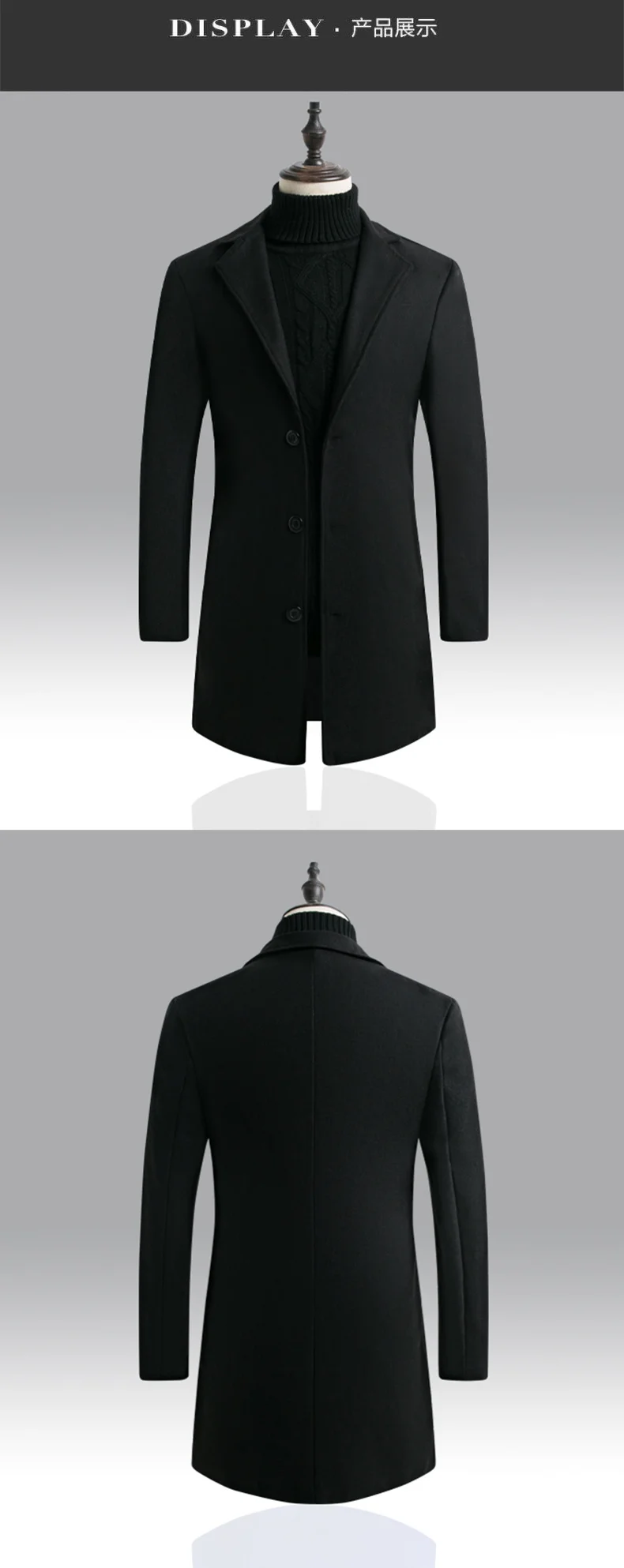 Осенне-зимнее мужское шерстяное пальто, длинное зимнее мужское шерс...
