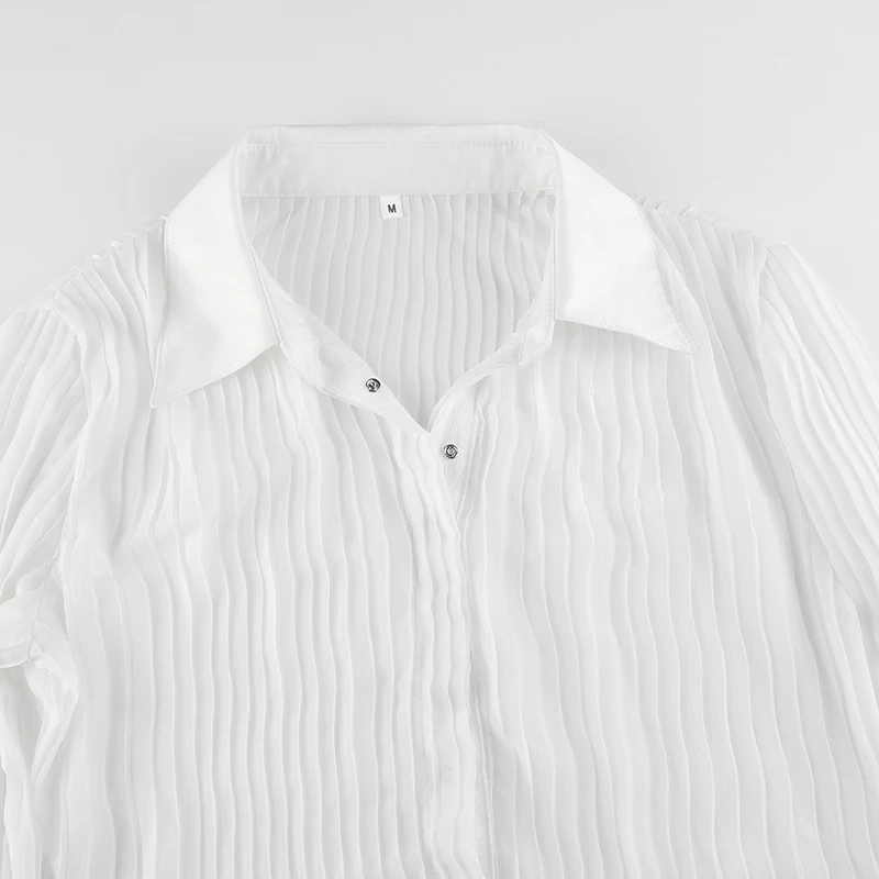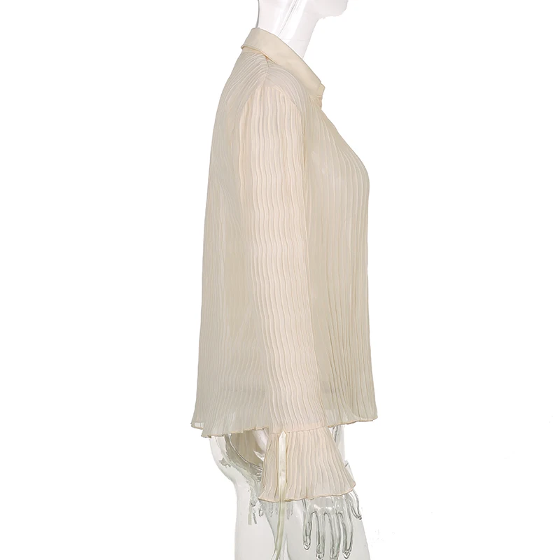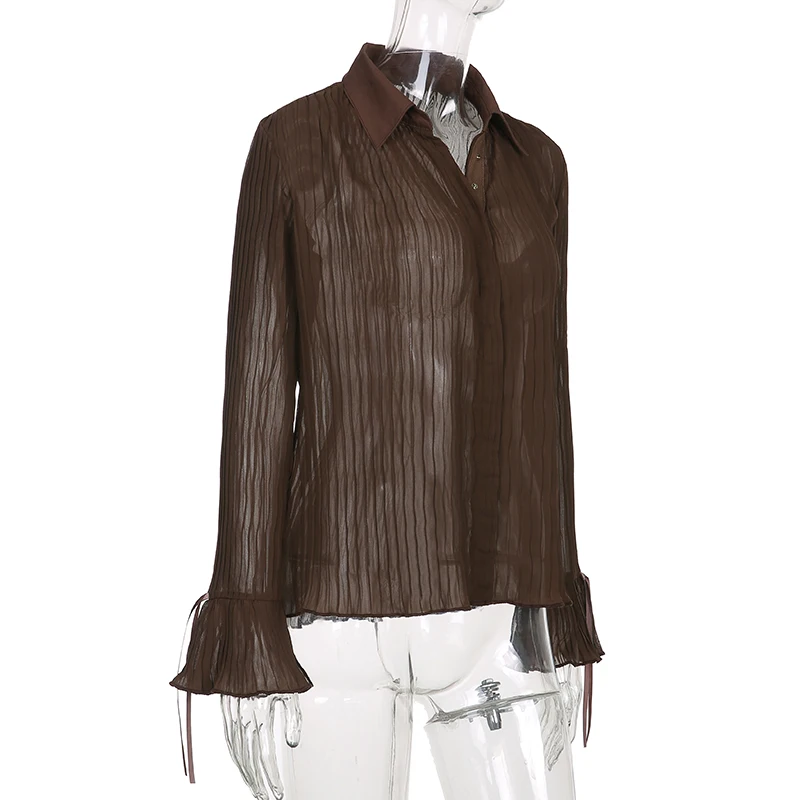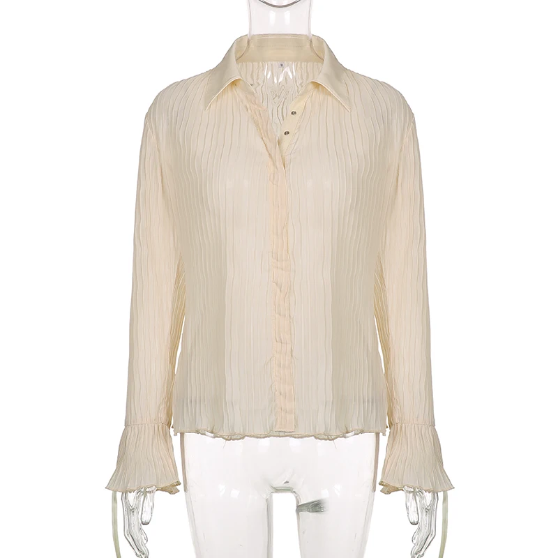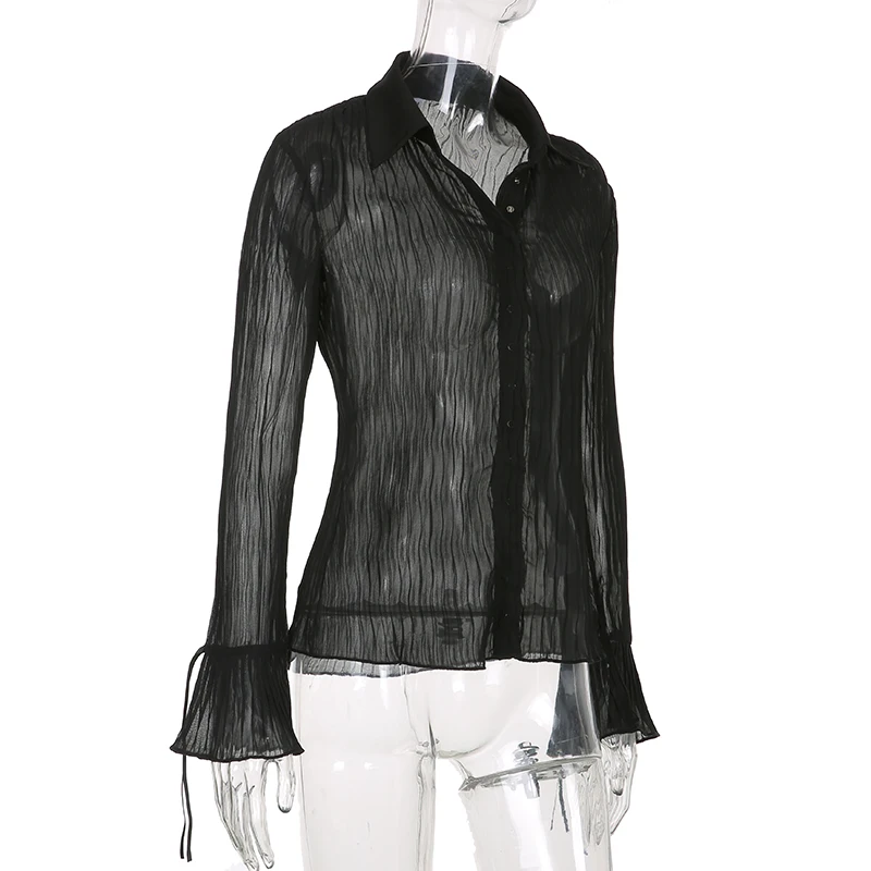 Прозрачная сетчатая Повседневная рубашка IAMSURE, винтажная блузка с длинным рукавом и отложным воротником, элегантные модные женские топы