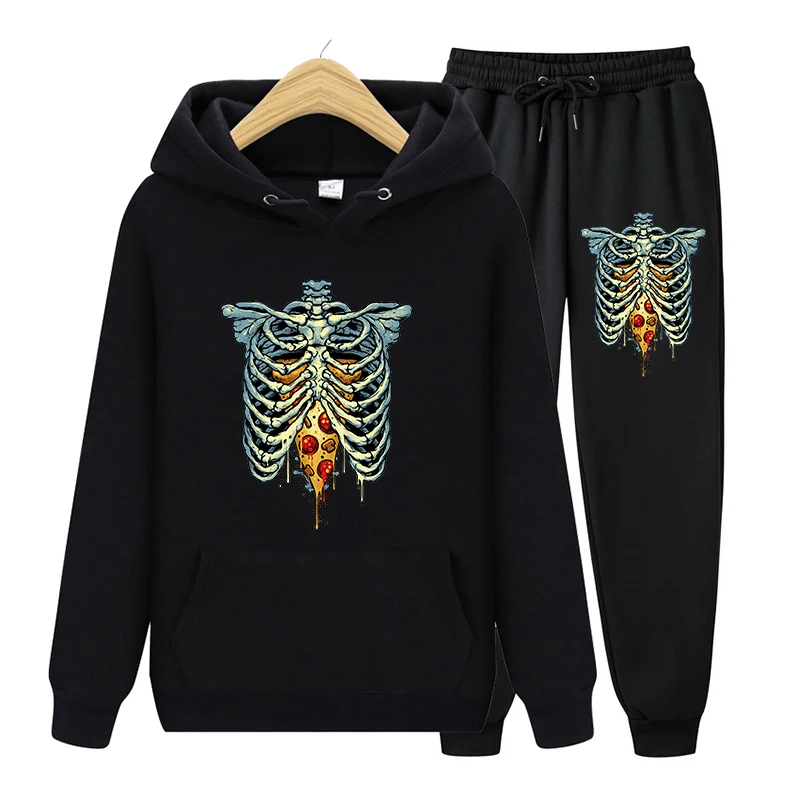 Пуловер унисекс, с принтом скелета, Модный повседневный спортивный костюм, Женский свитшот с капюшоном, спортивные штаны, удобная одежда, размера плюс