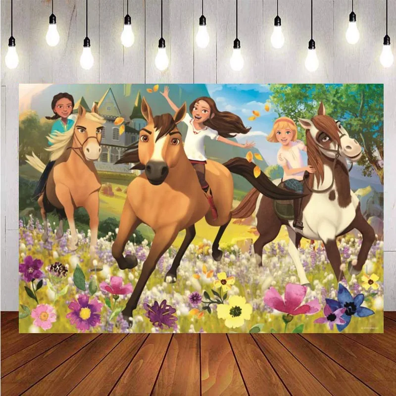 Фон для фотосъемки с изображением духовой лошади для езды на сцене принцессы для девочек на 1-й День рождения фон для фотосъемки Декор баннер реквизит