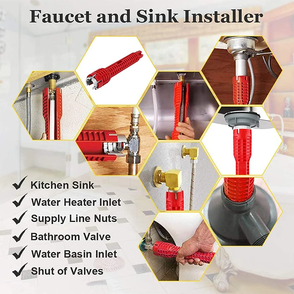 Гаечный ключ 8 в 1 для монтажа смесителей и раковин, противоскользящая ручка, гаечный ключ с двумя головками, удлиненный гаечный ключ