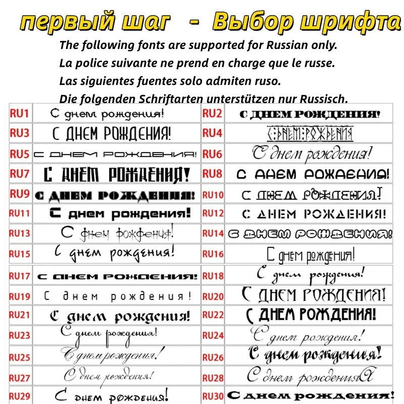 RU1-RU30 шрифтов поддерживаются только на русском языке