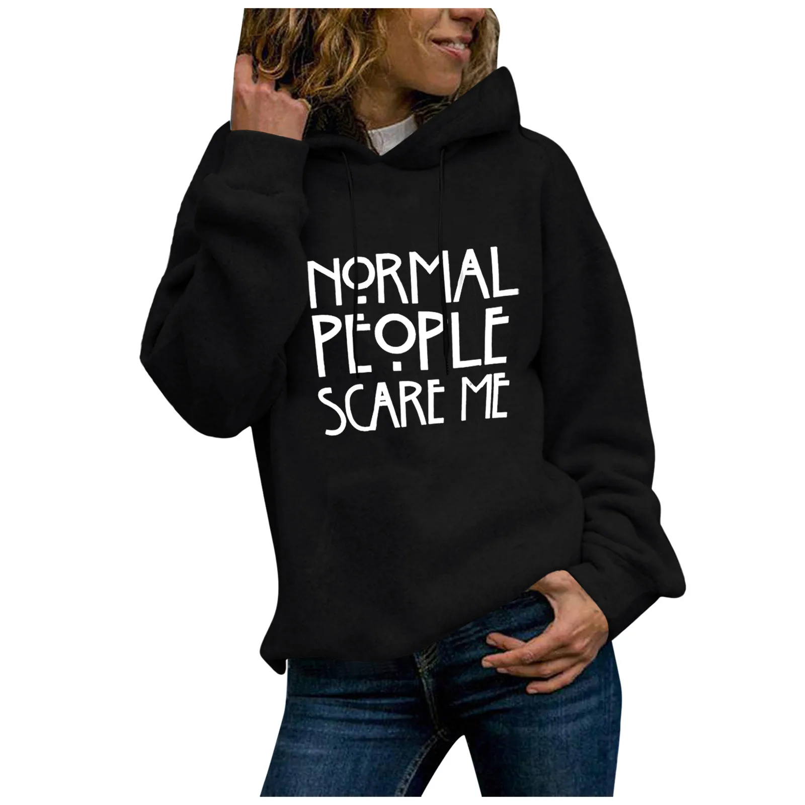 Толстовка с капюшоном Normal People, женская, черная, в стиле Харадзюку