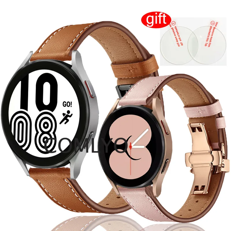 -100% новый и высокое качество-Подходит для улучшения и замены ваших часов-Пряжка-бабочка из кожи и нержавеющей стали-Отличная проницаемость подходит для повседневной носки-Размер запястья подходит для 155-205 мм-Модель: для Samsung Galaxy Watch 4 40 мм 44 мм/Samsung Galaxy Watch 4 Classic 42 мм 46 ммПосылка включает в себя:1 * кожаный ремешок для часов2 * Защитное стекло для экранаПримечание: Не включает Смарт-часы, только ремешок.