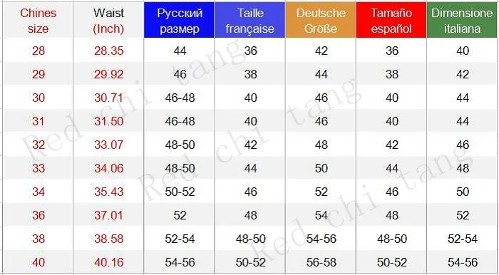 1. Единица измерения: см. При размещении заказа, Пожалуйста, измерьтеРазмер брюк (не размер тела)И Красный Чи Тан строго следуйте таблице размеров, чтобы выбрать размер.