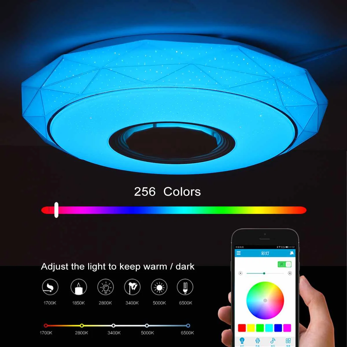 -Вы можете контролировать светильник/Яркость/цветовую температуру/цвет через телефон. Даже если вы находитесь в поле, если чехол нормального подключения, вы также можете дистанционно управлять лампами и фонариками дома через мобильный телефон. Интеллектуальное подключение Wi-Fi, регулярное включение и выключение света, регулярное напоминание.