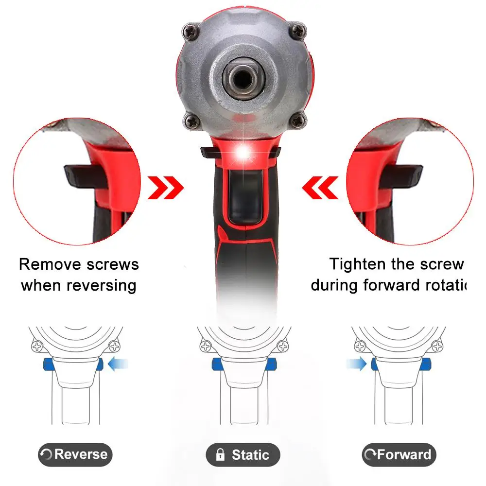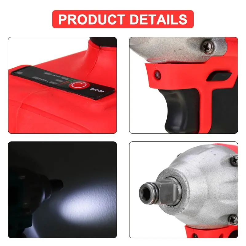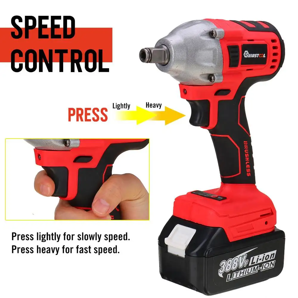 Особенности:-Высокий крутящий момент 800 нм, бесступенчатый переключатель переключения скорости.-Мощный электрический ключ, многоцелевой, сверхмощный.-Вал из вольфрамовой стали, высокая твердость и износостойкость.-Подходит для полок строительной площадки, обслуживания, деревообработки и т. Д.-Бесщеточный двигатель не создает искр во время работы, двигатель не износ.-Со светодиодный светильник кой.
