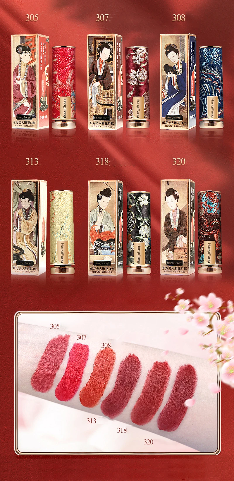 Hengfang 6 цветов резная губная помада в ретро стиле бархатная мато...
