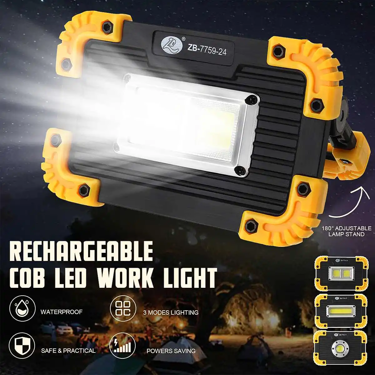Портативный прожектор 500000lm, светодиодный светсветильник льник COB, 3 режима, светодиодный фонарь для путешествий, фонарь для кемпинга, светодиодная лампа COB, фонарик, USB-аккумулятор