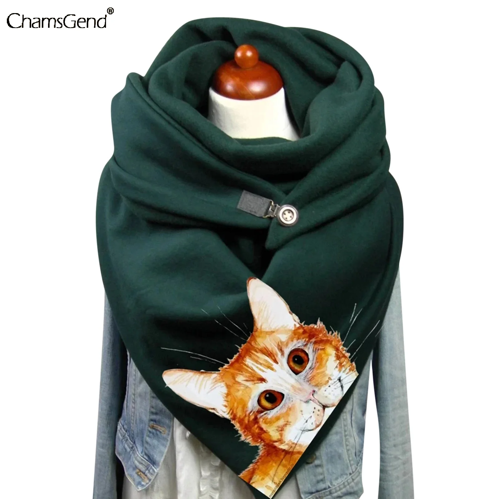 Забавный женский зимний теплый шарф с изображением кота, с застежкой на пуговицы, пашминовый палантин, шарфы с изображением кошек