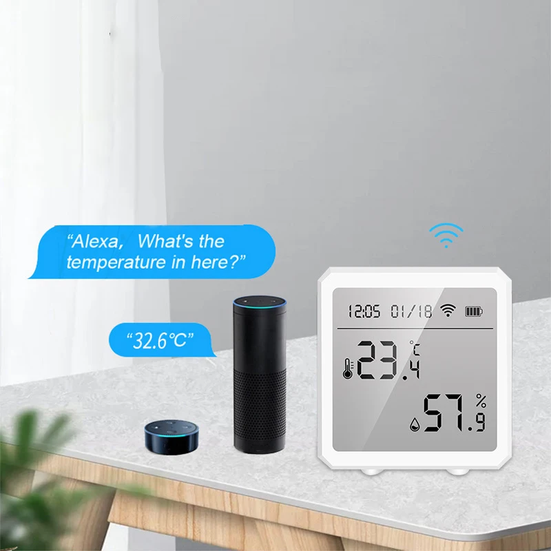 Умный WiFi термометр гигрометр Голосовое управление беспроводной датчик влажности комнатной температуры на батарейках бытовой TSL1