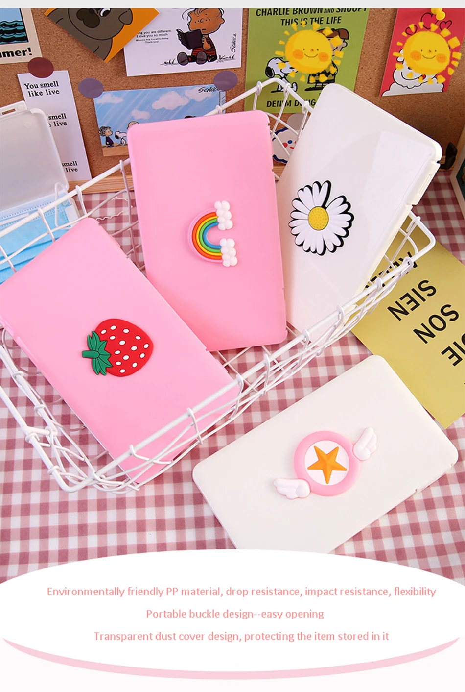 Экологически чистый полипропиленовый материал, устойчивость к падению, ударопрочность, гибкость.Портативный дизайн с пряжкой-легко открываетсяПрозрачный чехол от пыли дизайн, защита хранящегося в нем предмета.