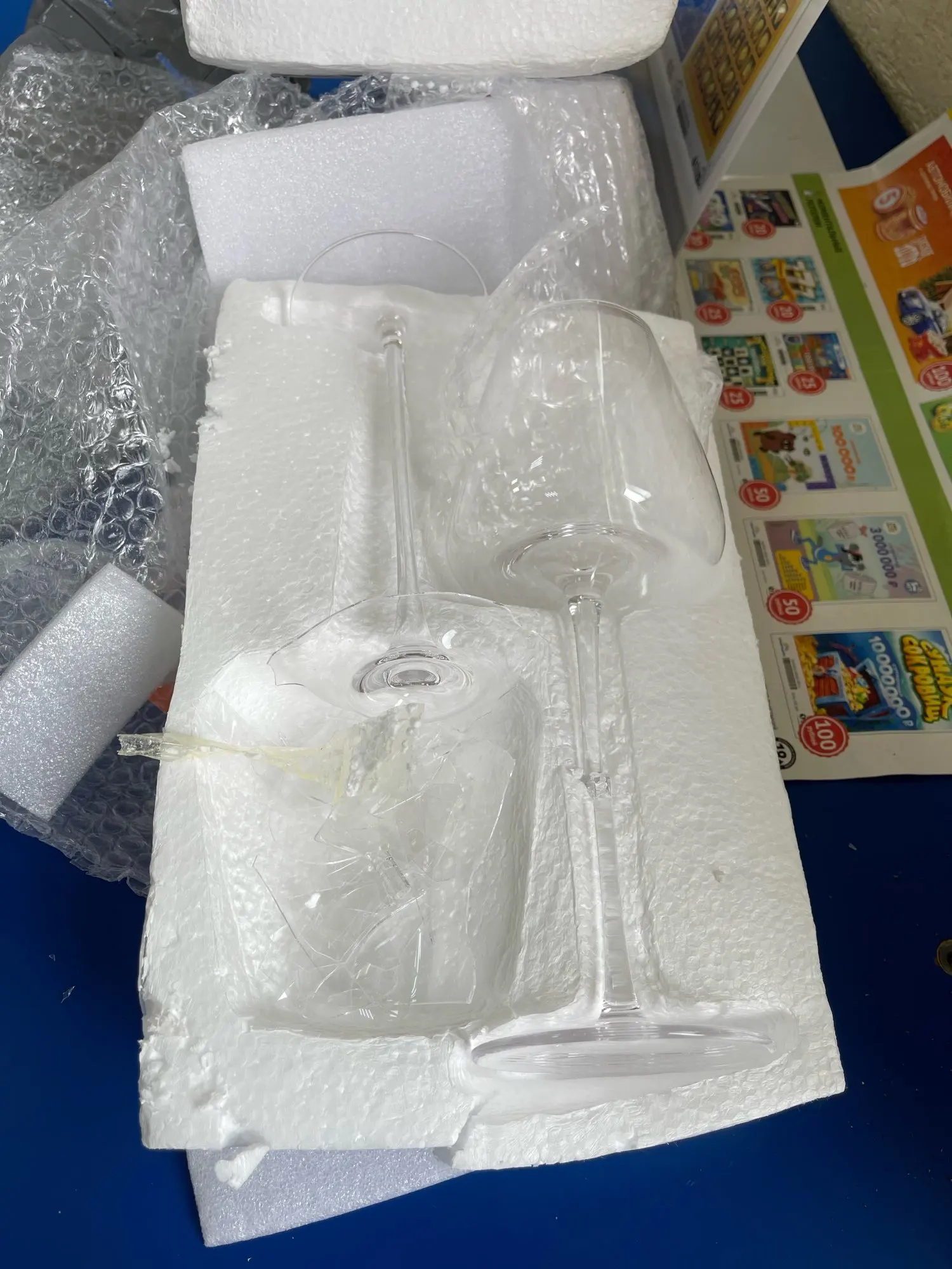 При доставке один разбился, один уцелел. Вернули 50%. И что мне теперь с этим одним делать? Второй не закажешь, придется еще пару брать. В итоге будет три (в лучшем случае). И зачем мне три? Мне два нужно было. Получается, переплачу 8$ за лишний бокал. Фигня короче. А упаковке не хватает воздушного пакета - тогда бы всё доехало в целости!