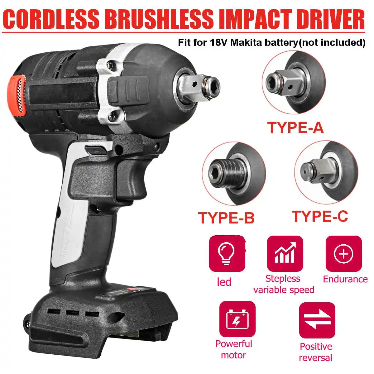 2 in1 18V 800N.m. Литий-ионный бесщеточный беспроводной электрический 1/2 "гаечный ключ 1/4" отвертка дрель Замена для батареи Makita