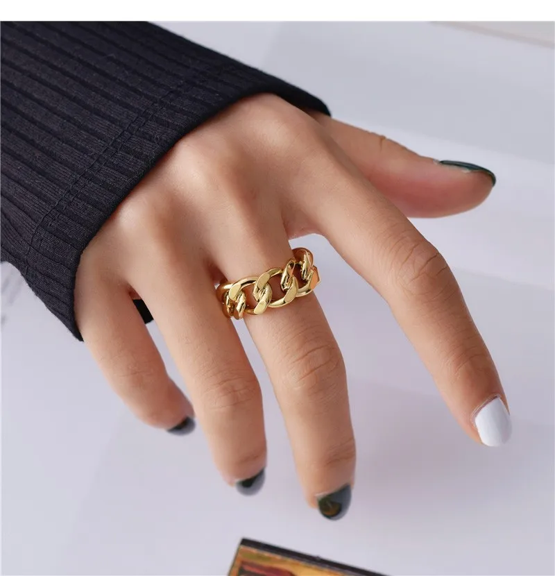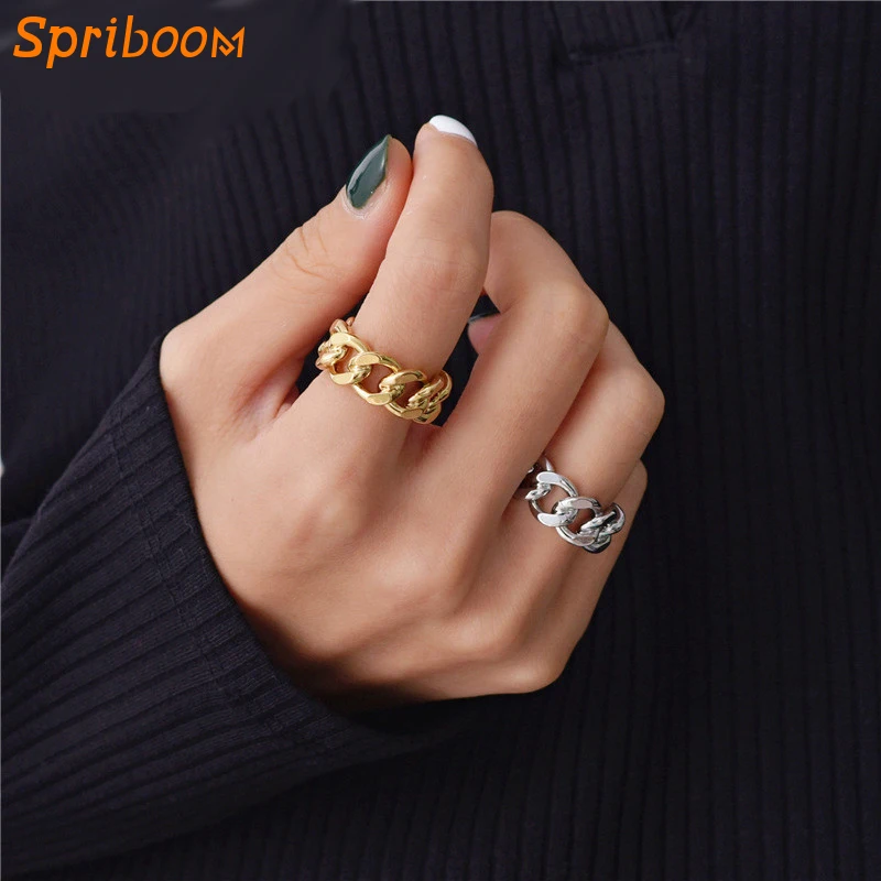 Женское кольцо из нержавеющей стали с кубинской цепью, винтажное Зо...