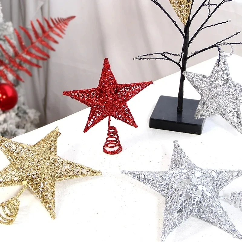 Украшение для рождественской елки, пятиконечная звезда, украшение для рождественской елки, золото, серебро, красный, орнамент с рождественской елкой