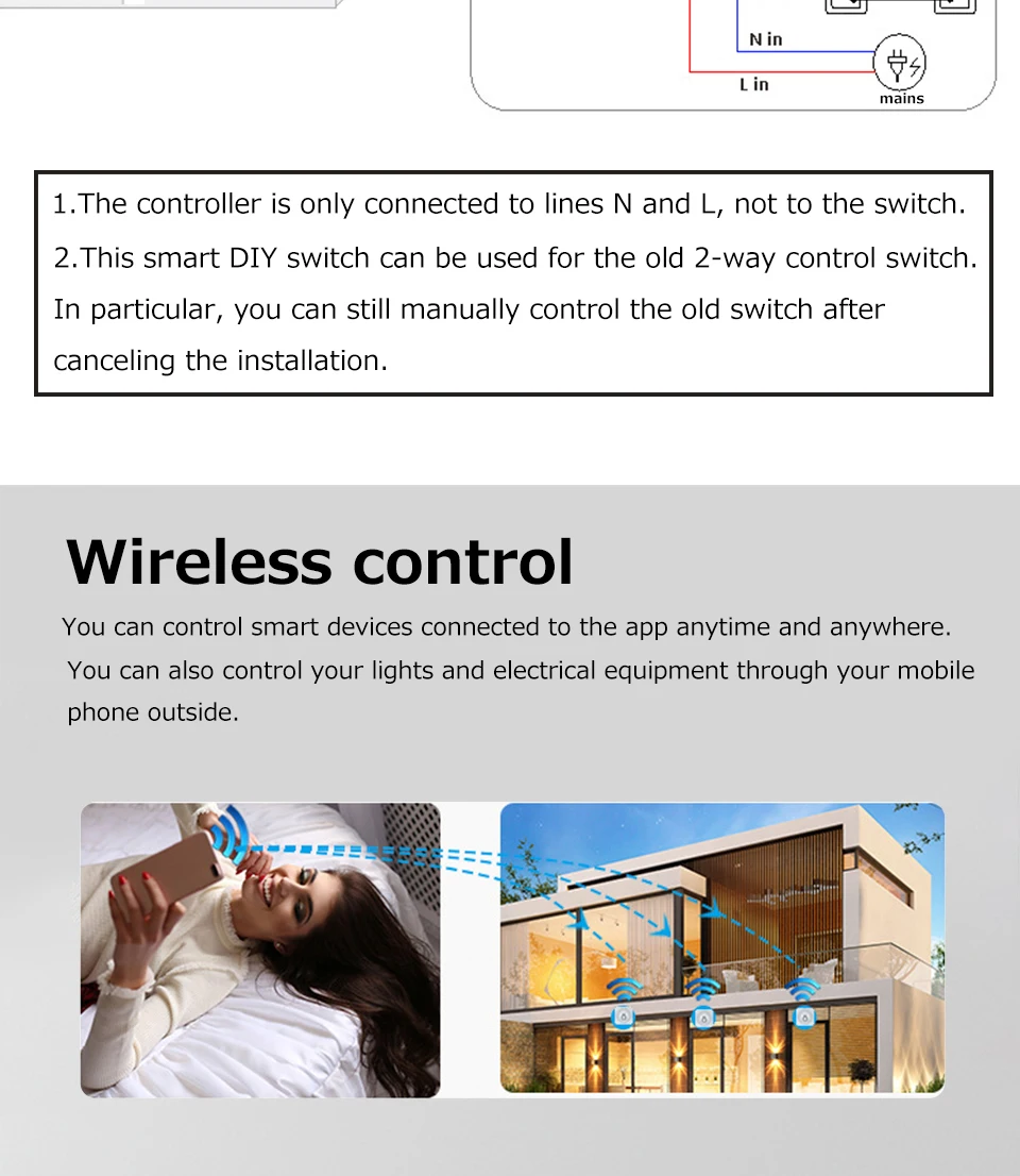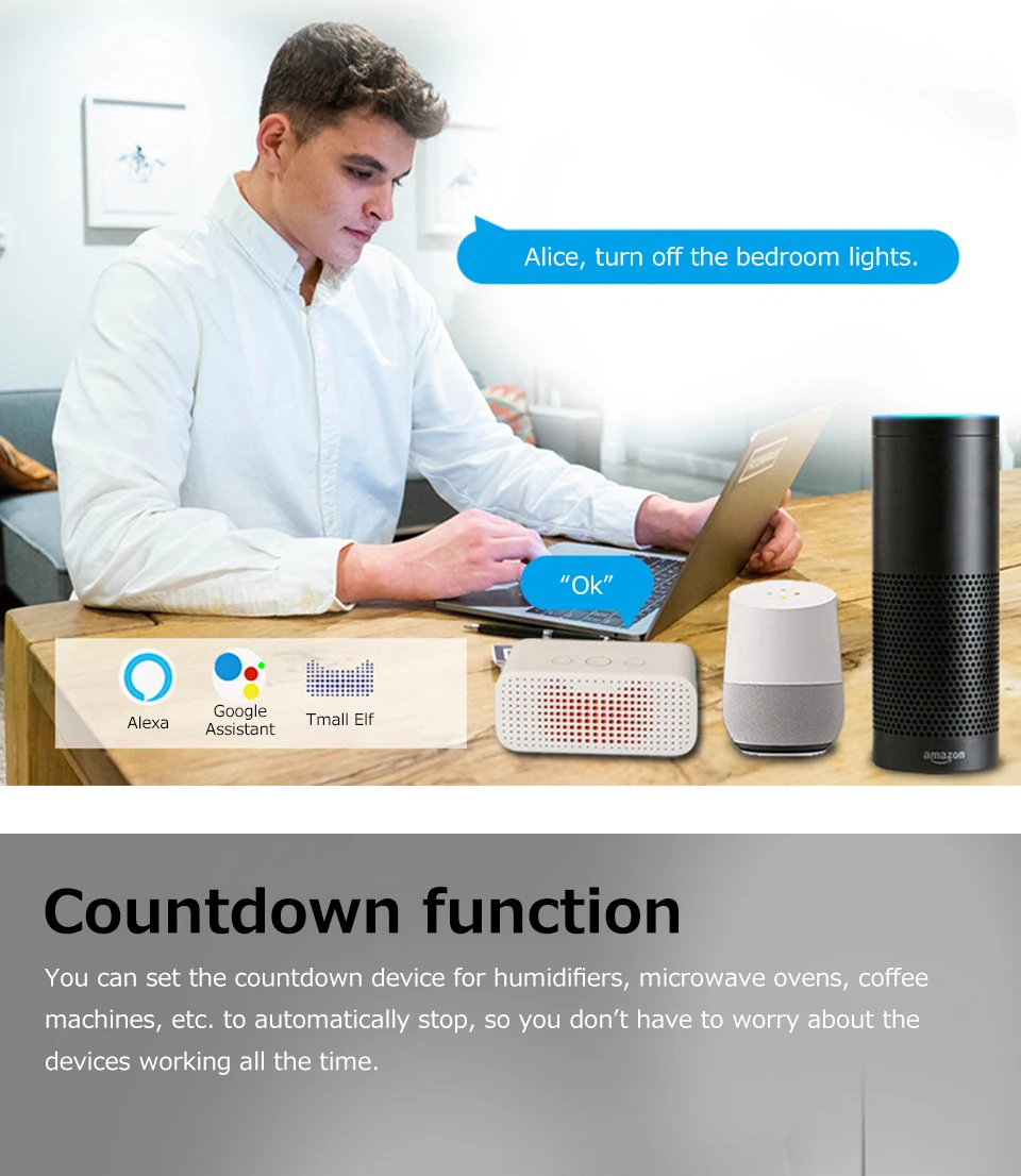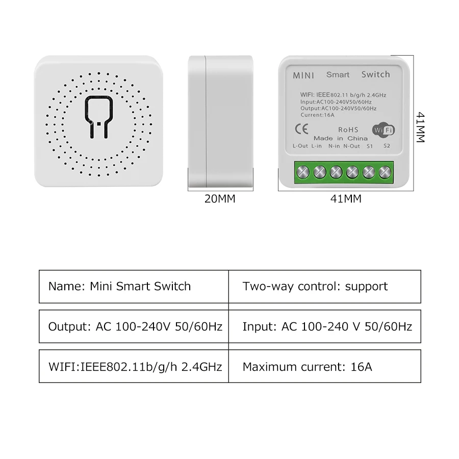 Умный выключатель Tuya 16 А, мини-переключатель с Wi-Fi, двухсторонний, светильник голосовым управлением через приложение, работает с Alexa Google Home