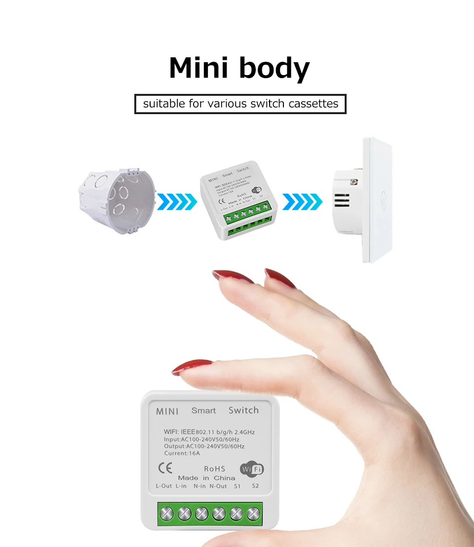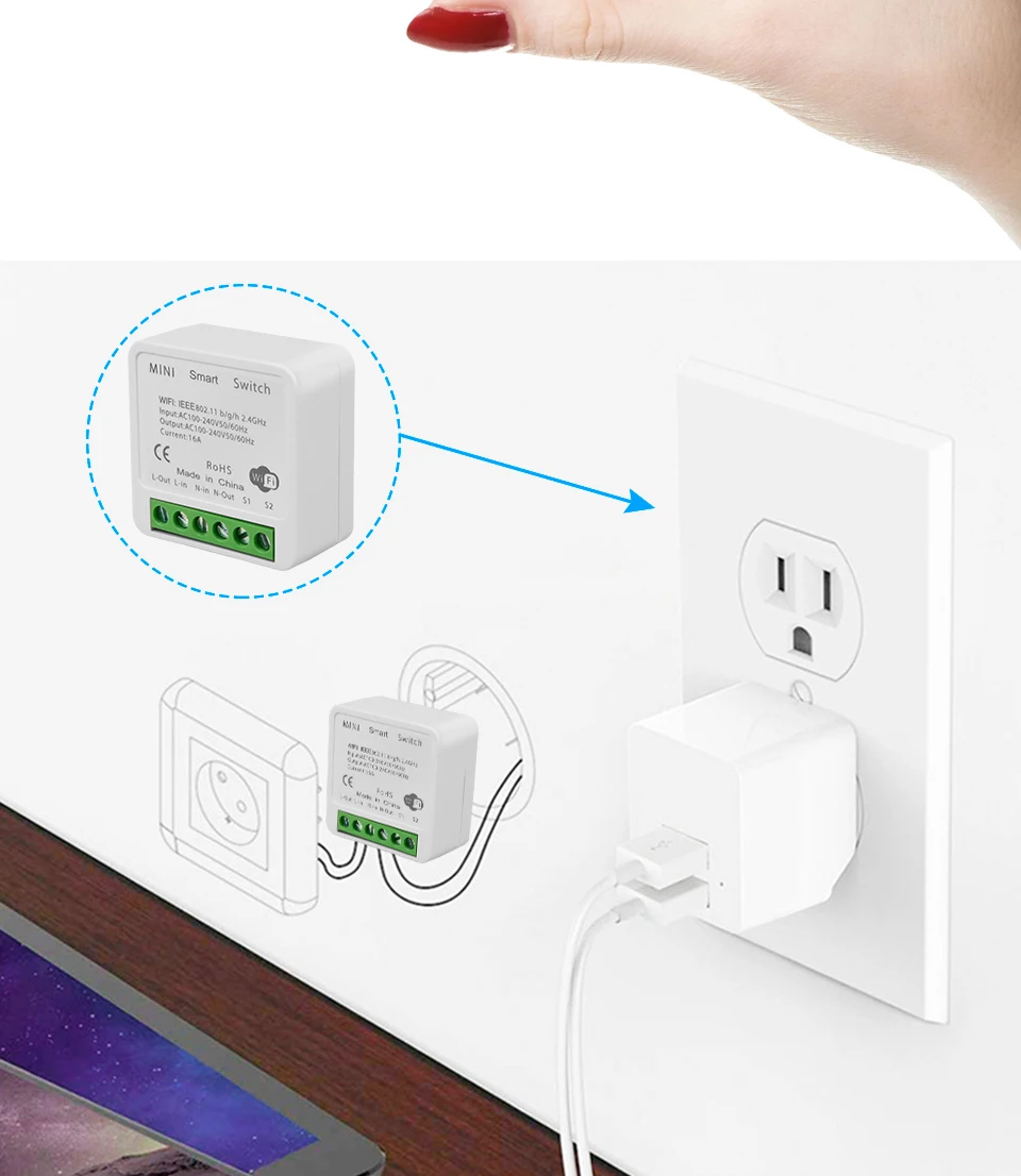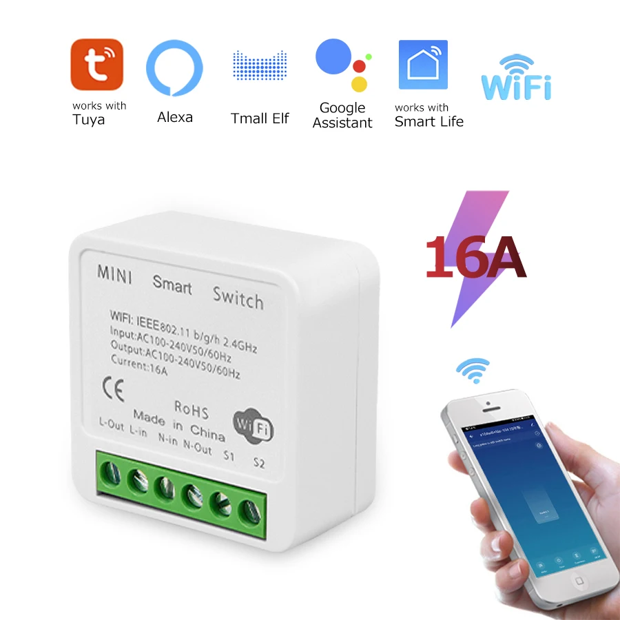 Tuya 16A смарт-переключатель Wifi DIY мини-переключатель Поддержка 2 Way приложение голосовое реле Таймер Умный домашний прерыватель работа для Alexa,Google Home