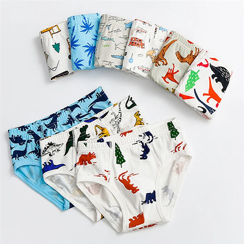 5 шт., Детские хлопковые трусы с принтом динозавров
