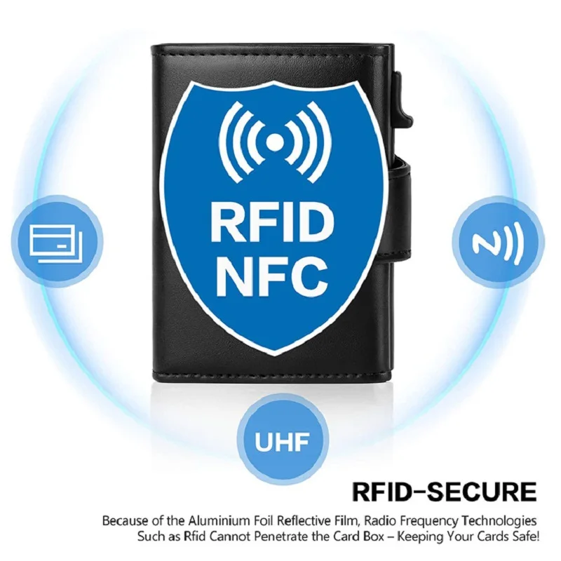 【RFID blockking】-RFID Блокировка всплывающий держатель кредитной карты кошелек может идеально блокировать нежелательные RFID сканеры, включает технологию блокировки RFID для предотвращения несанкционированного доступа к личной информации, защиты ваших RFID кредитных карт, дебетовых карт, идентификационные карты из электронного кармана. Это безопасно и хорошо подходит для путешествий RFID кредитный держатель для карт.