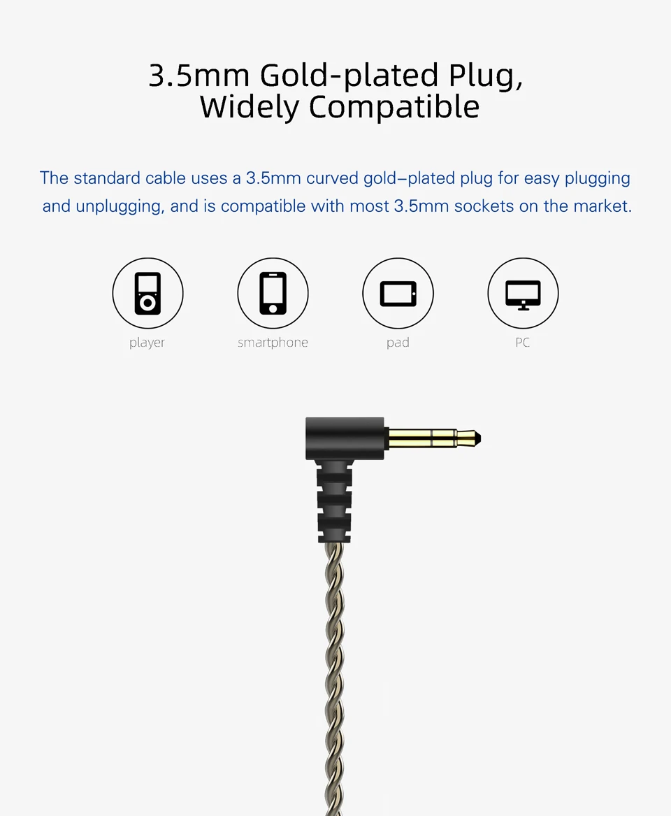 В DB3 принял 0,78 мм 2-контактный стандарт, по умолчанию кабель предназначен для того, чтобы быть прочный и легкий. Он также использует позолоченный 3,5 мм аудио разъем для универсальной совместимости и стабильное соединение.