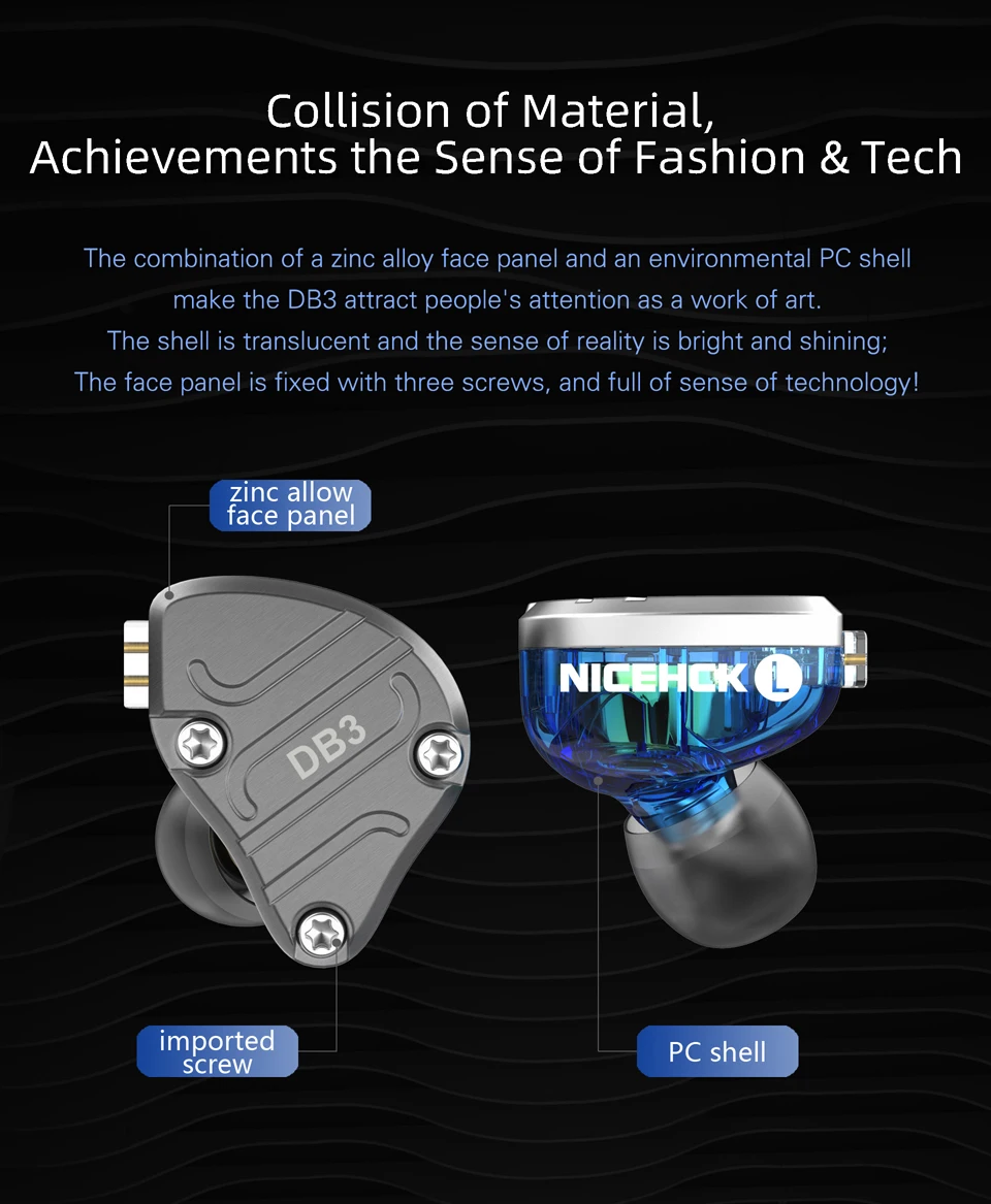 Используя сочетание металлического цинкового сплава и поликарбоната для его оболочки, вы сразу заметите высокое качество сборки этого наушника. Не только он предназначен для эстетики, NiceHCK также позаботился о том, чтобы сделать посадку максимально эргономичной и удобной, что делает ее идеальной для длительных прослушивания. Все это делает DB3 более ценным, чем наушники во много раз дороже.