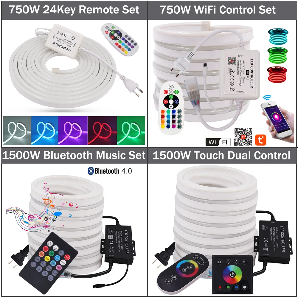 RGB светодиодная ленсветильник AC 220V Водонепроницаемая лента светодиодный неоновый светильник Гибкая неоновая вывеска 5050 2835 Светодиодная лента WiFi Bluetooth неоновый канат светодиодный