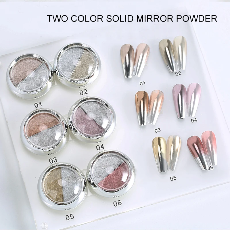 Двухцветный твердый зеркальный порошок Champage, розовый, золотой блеск для ногтей, УФ-Гель-лак, порошок для украшения, пыльный пигмент, металлик, хром