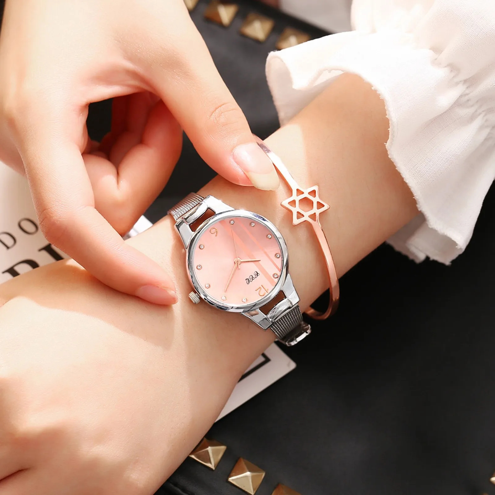 Часы наручные женские кварцевые с браслетом из нержавеющей стали