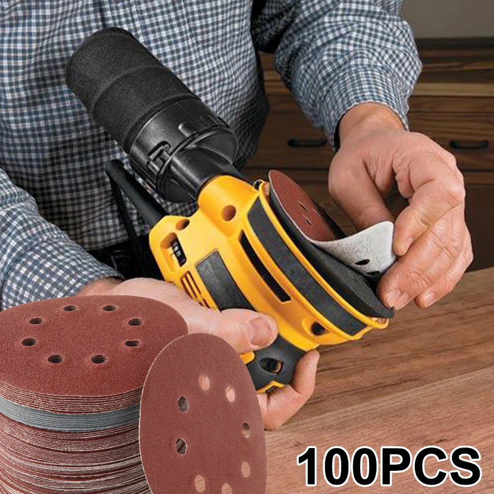 100 шт. наждачная бумага круглой формы, 125 мм, шлифовальные диски, автомобильная шлифовальная бумага с петлей и крючком, листы для полировки, наждачная бумага с 8 отверстиями, Полировочная, шлифовальная машинка Pad