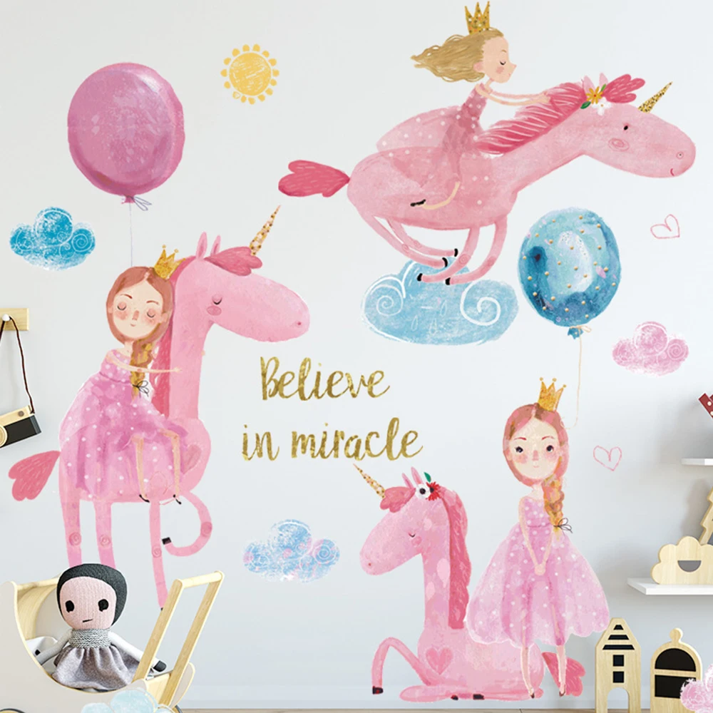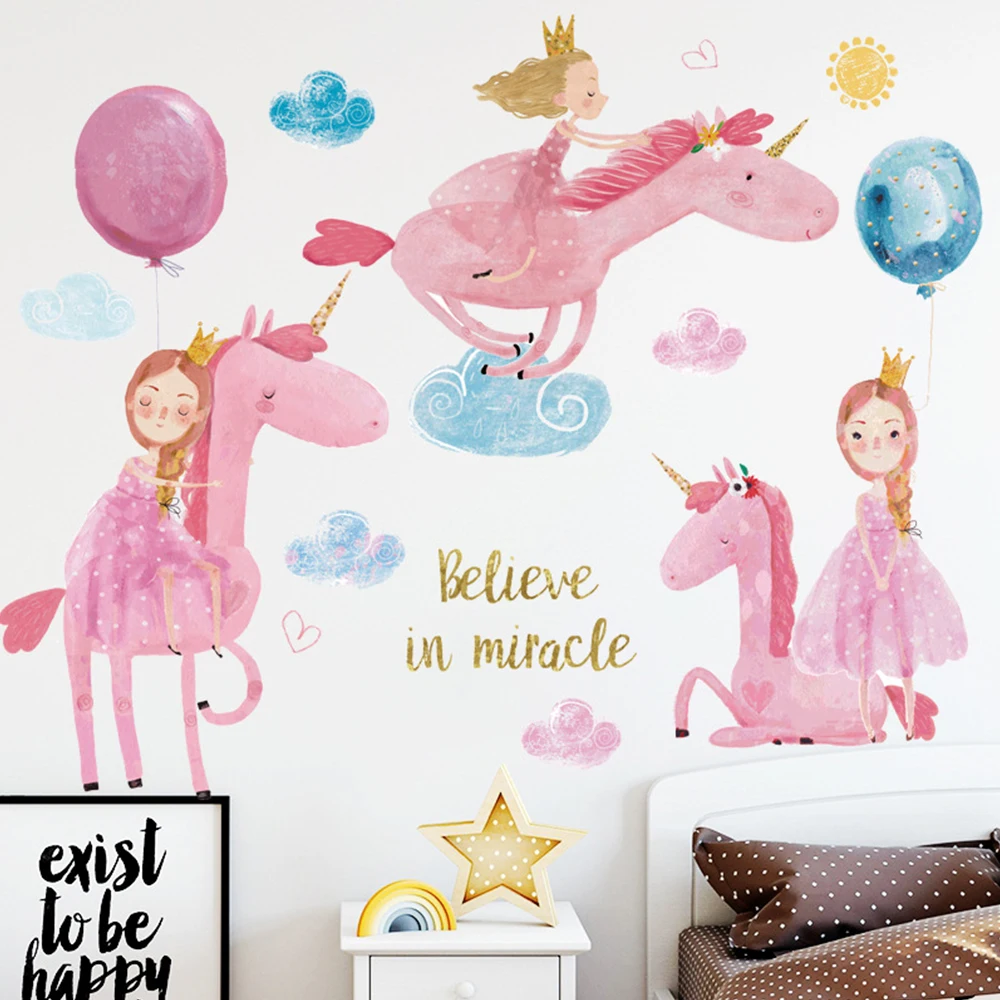 Розовые самоклеющиеся наклейки с рисунком принцессы для украшения дома, наклейки на стену в виде единорога для маленьких девочек, наклейки для детского сада в спальню