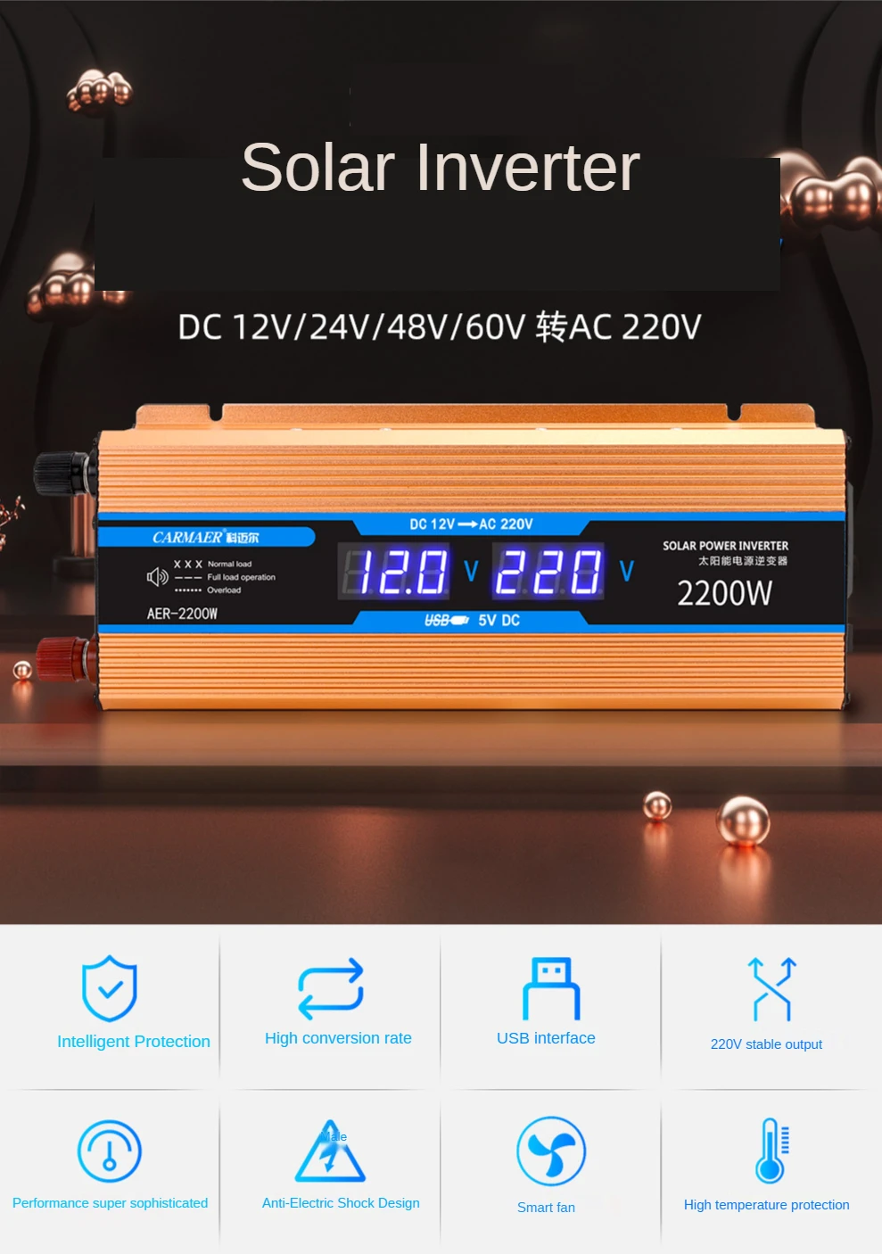 DC 12V 24V 48V 60V to AC220 V бортовой Солнечный преобразователь инвертор