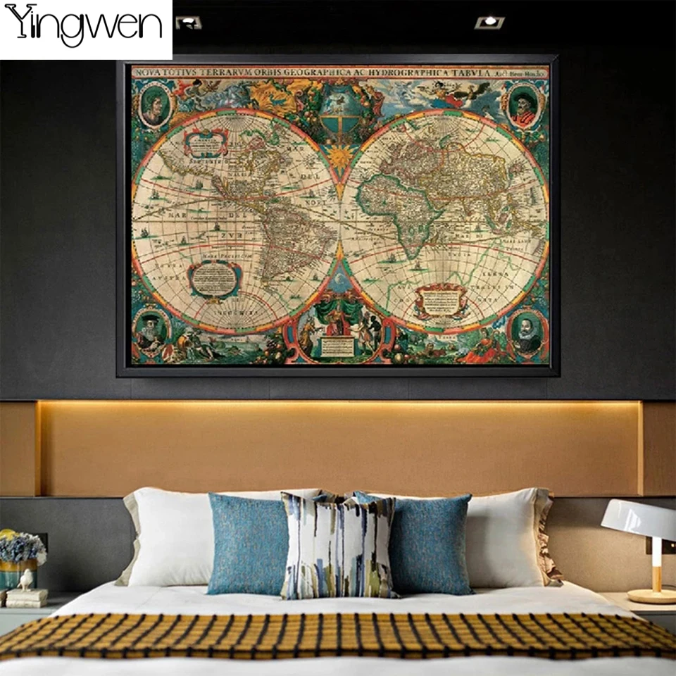 5D DIY большой размер Алмазная картина винтажное художественное изображение карты мира 3D Стразы Вышивка Бисер Вышивка крестом мозаика картина домашний декор