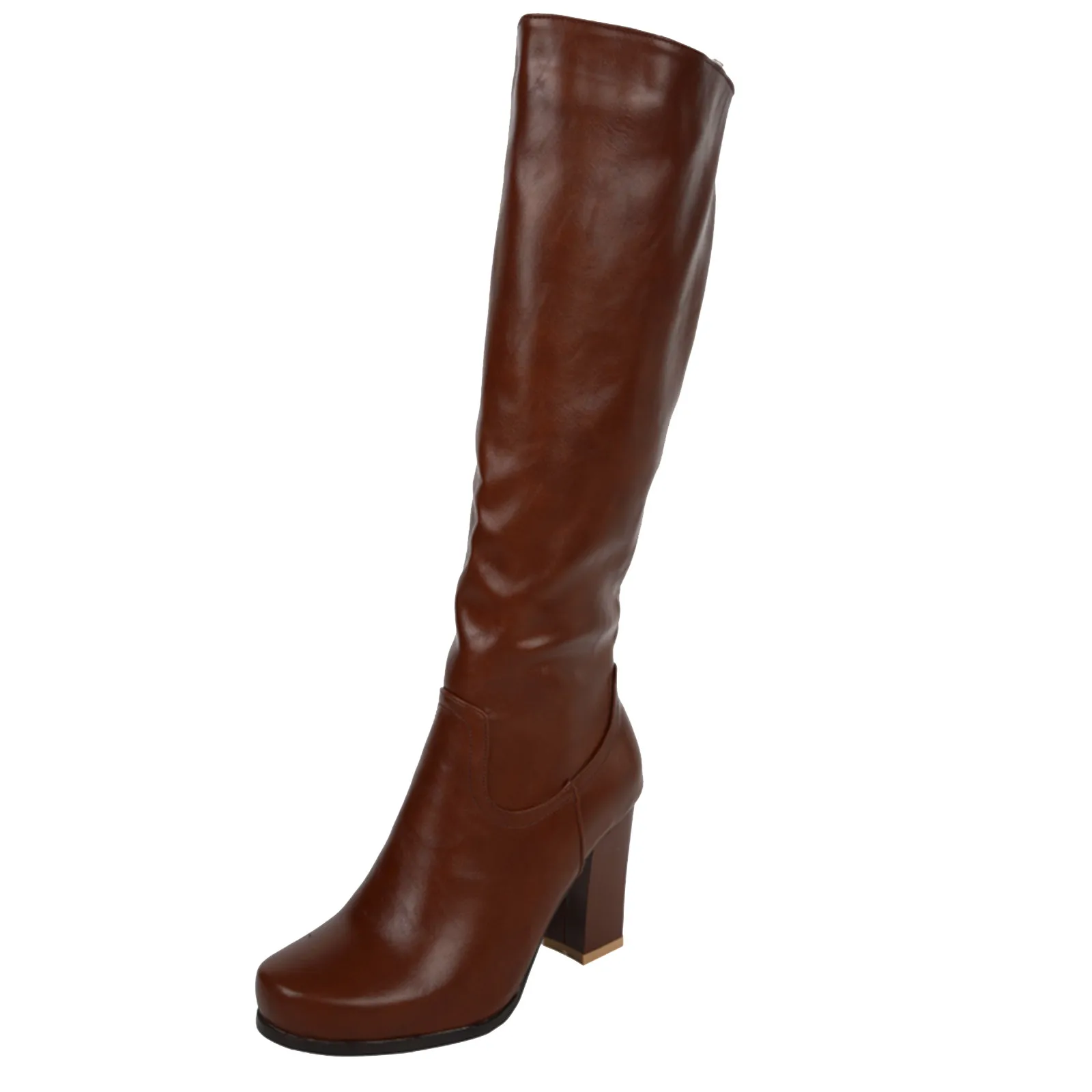 Новое поступление 2021, женские ботинки, зимние и осенние сапоги, рыцарские сапоги с длинным круглым носком, сапоги до колена на высоком квадратном каблуке