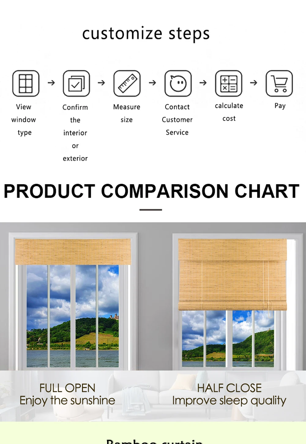 Индивидуальные натуральные бамбуковые жалюзи для окон, балконные жалюзи, Затемненные оконные шторы дневного света