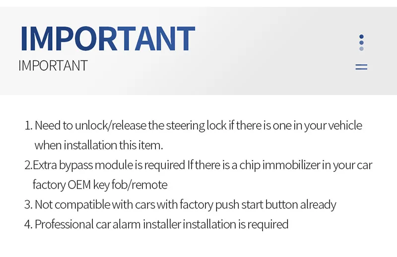 Если ваш автомобиль-дизельный автомобиль со временем запуска двигателя более 3 секунд, вы можете сначала включить приборную панель, чтобы предварительно прогреть свечу зажигания, а затем завести автомобиль или добавить дополнительный выключатель с выдержкой времениИдет в комплекте с руководством пользователя и инструкцией по установке на английском языке.