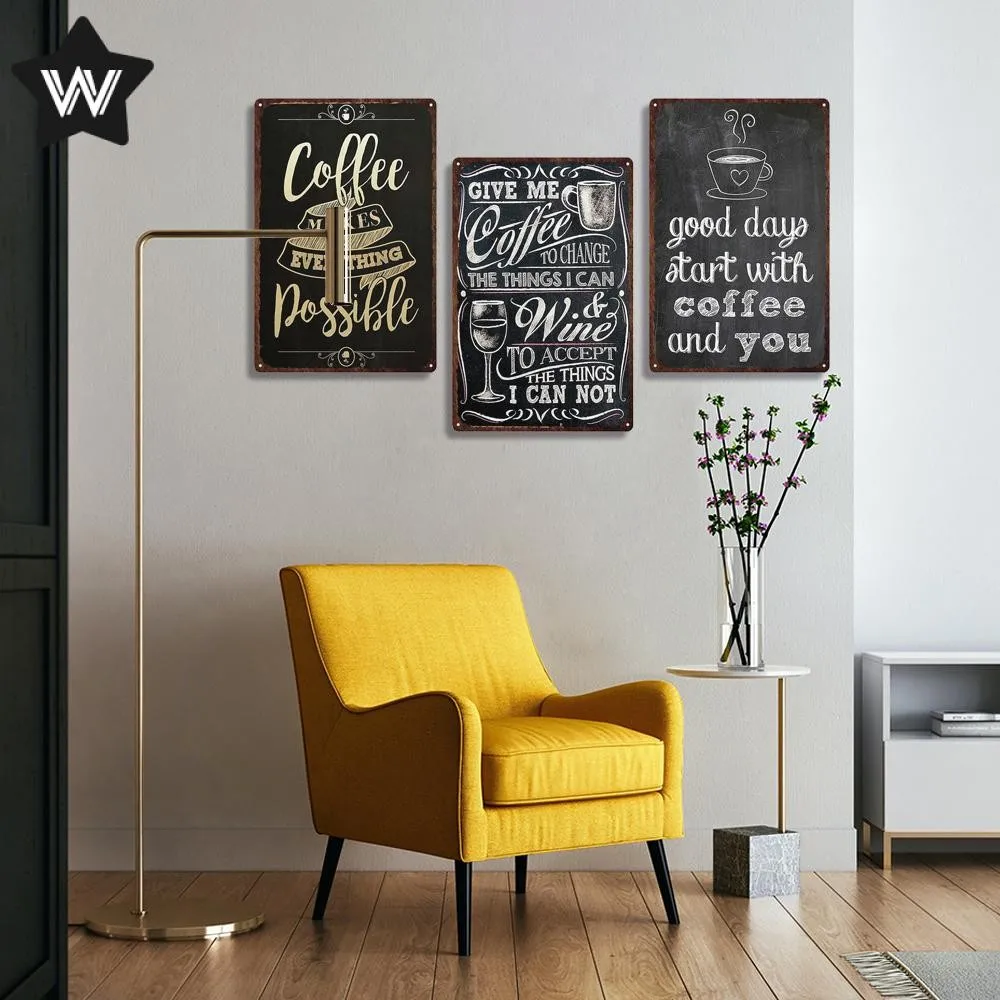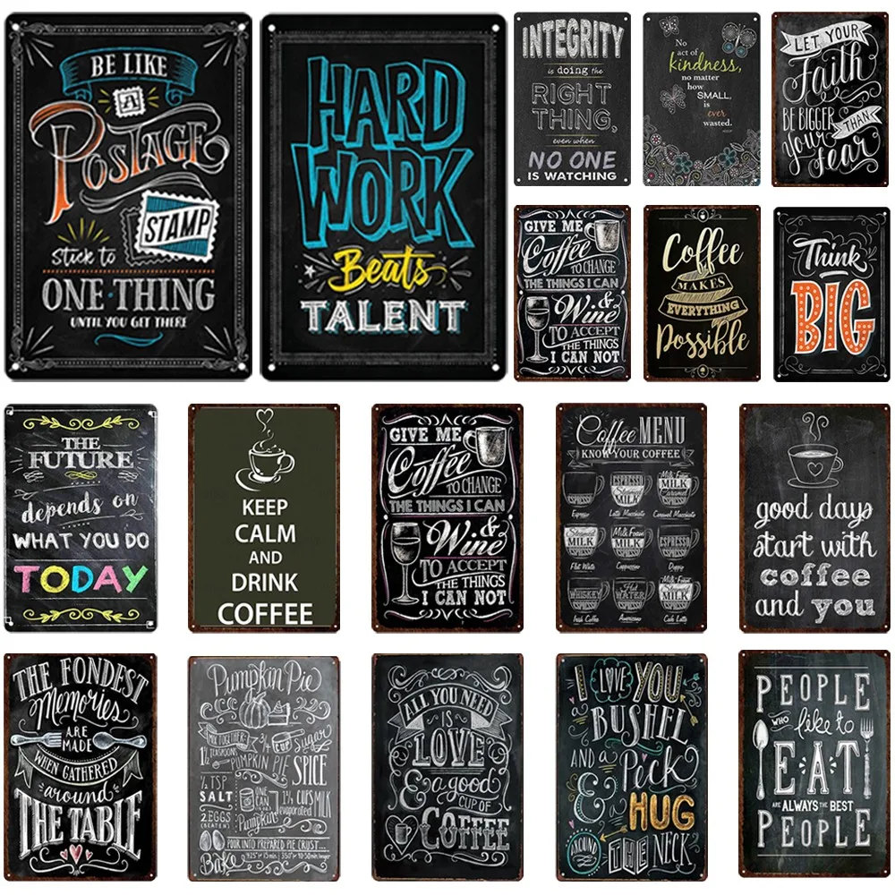 Металлический рекламный щит для кофе и коктейлей, винтажная настенная наклейка, потертая Оловянная пластина в стиле ретро, черно-белая жестяная пластина для декора бара