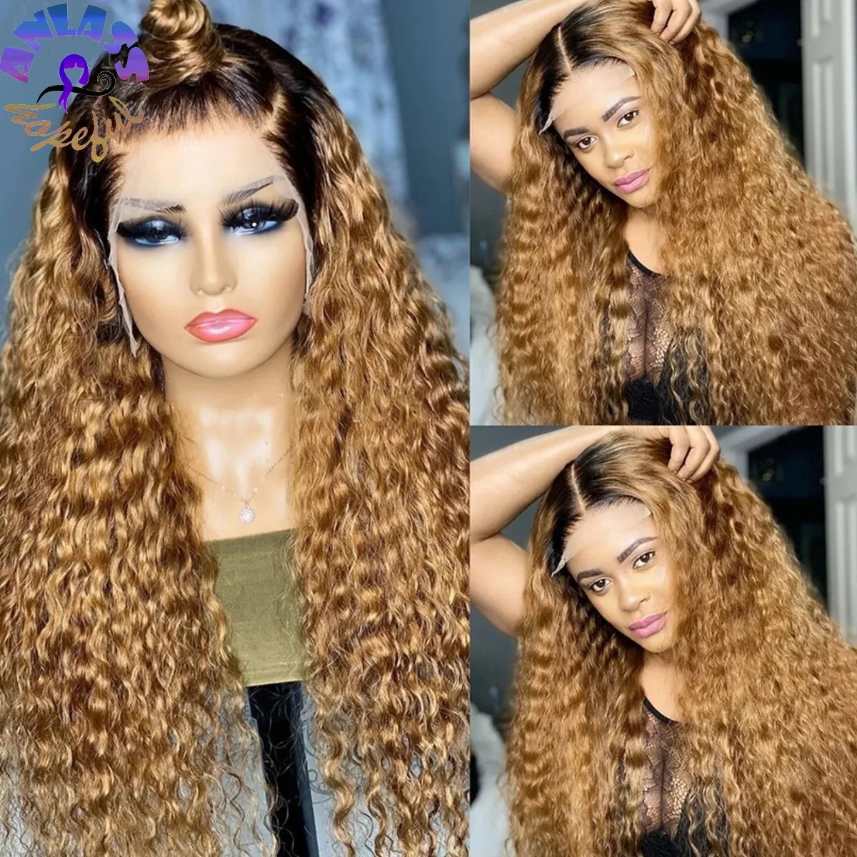 Новый кудрявый парик из передних волокон на сетке черногокоричневогоБлонд цвета, синтетический парик на сетке спереди, предварительно выщипанные Детские волосы без клея