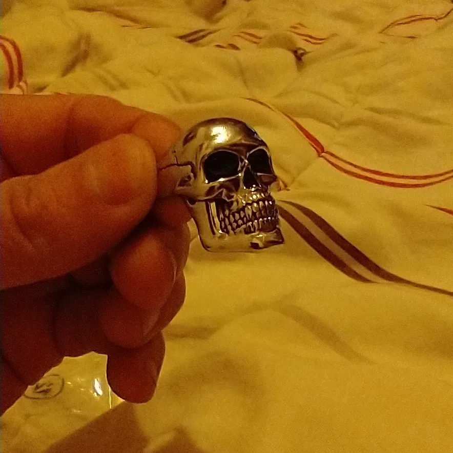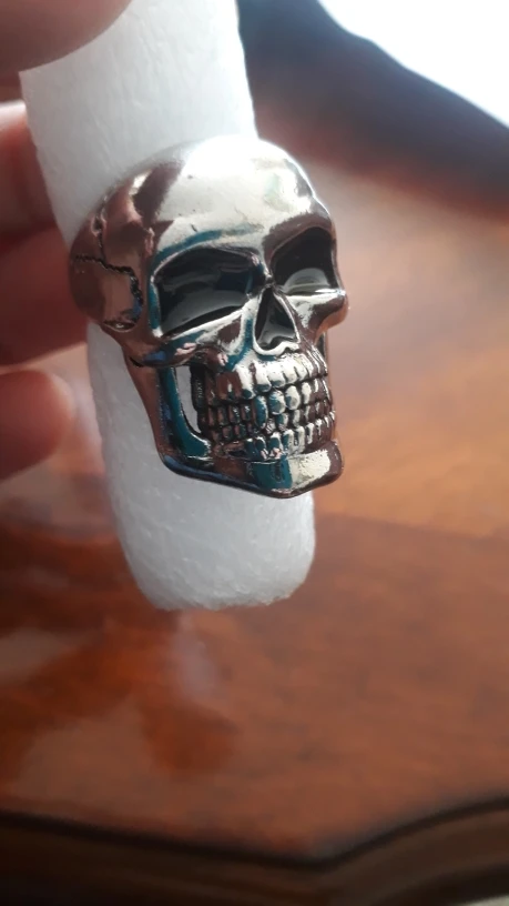 Кольцо само по себе очень хорошее, но я был немного разочарован (и путается!) потому что я заказал его в двух разных размерах колец (а 9 и 8) и череп на 8 размере намного больше, чем тот, что на 9? Можно подумать, что череп будет иметь одинаковый размер и изменится только диаметр кольца