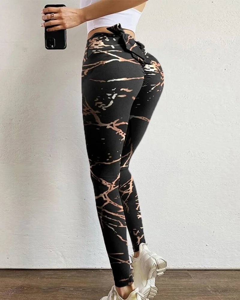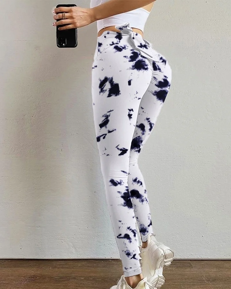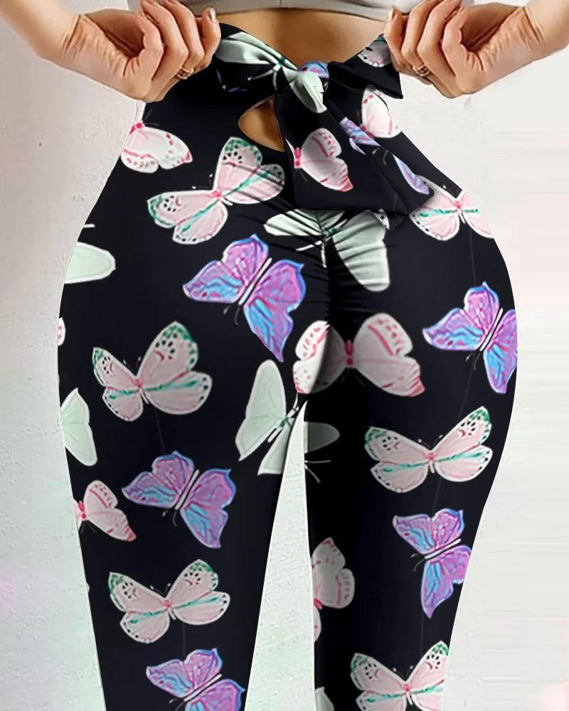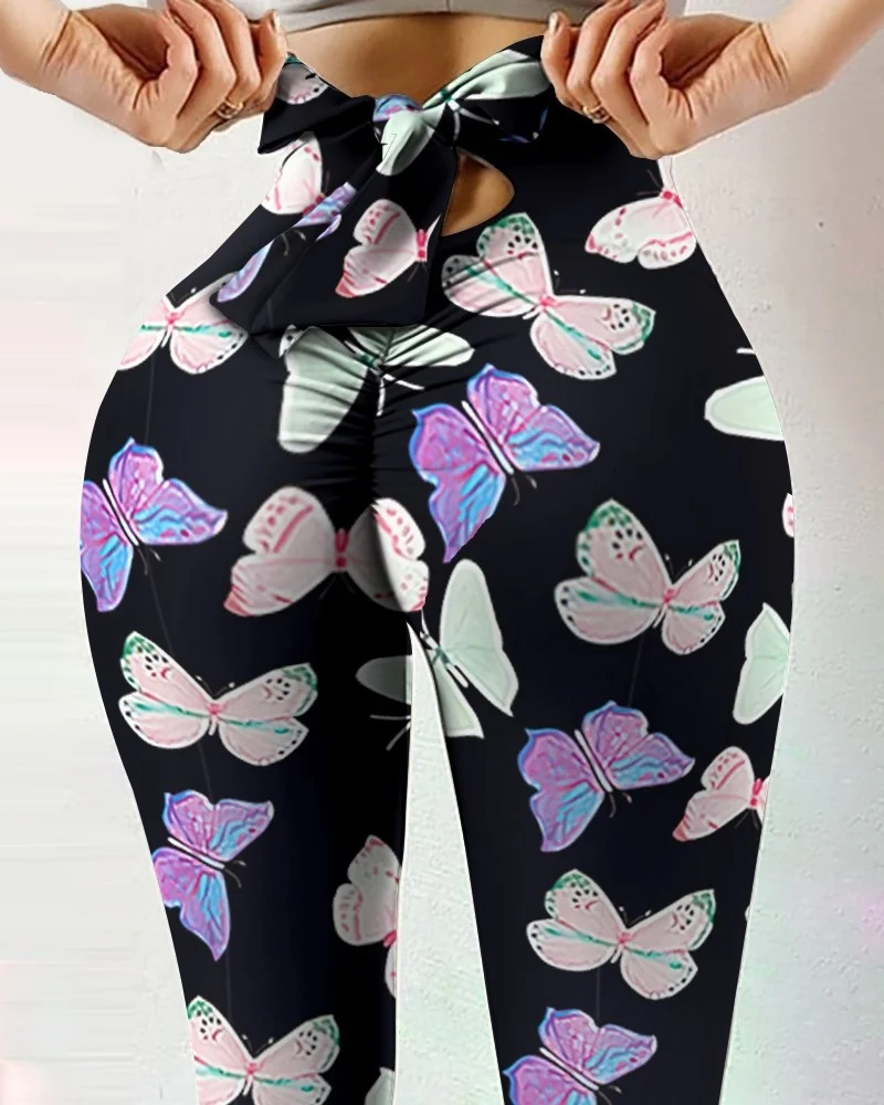 Женский галстук-бабочка с цифровой печатью Стрейчевые брюки для фитнеса с высокой талией