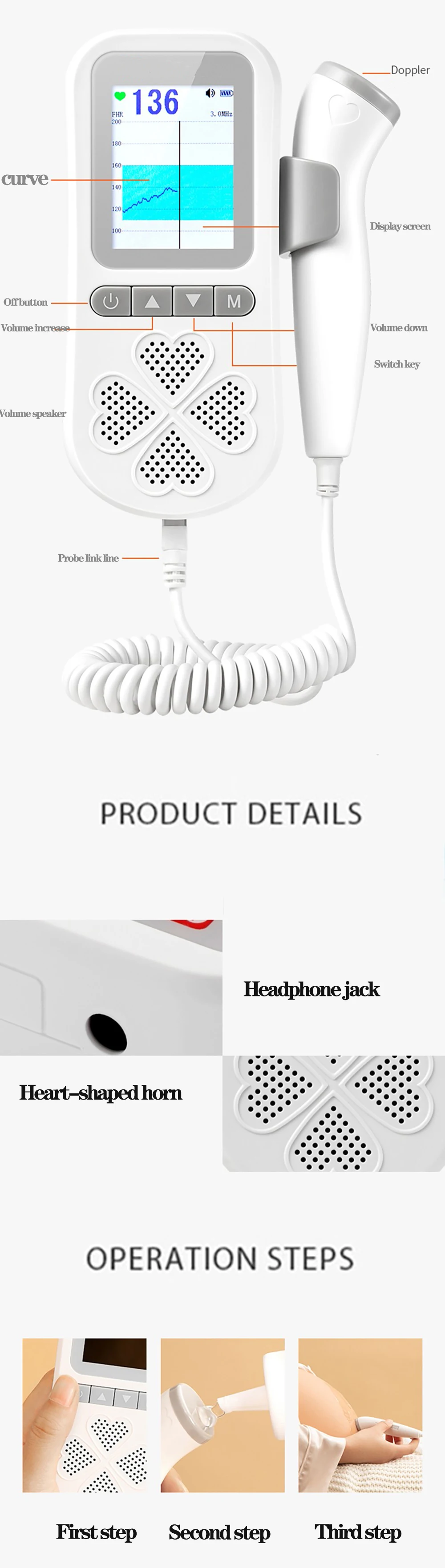 Медицинский допплер плода, двухрежимный монитор сердечного ритма, 3...