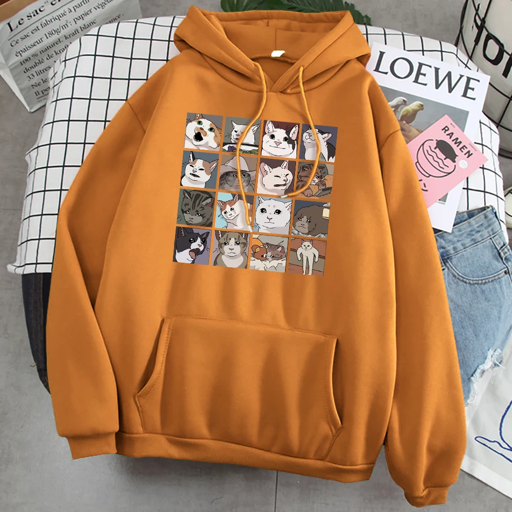 Женская толстовка с капюшоном, свитшот с изображением забавной кошк...
