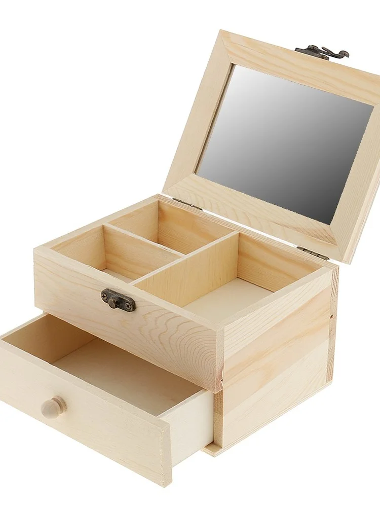 2 яруса, простая Неокрашенная деревянная шкатулка для ювелирных изделий, необработанный ящик, чехол сделай сам