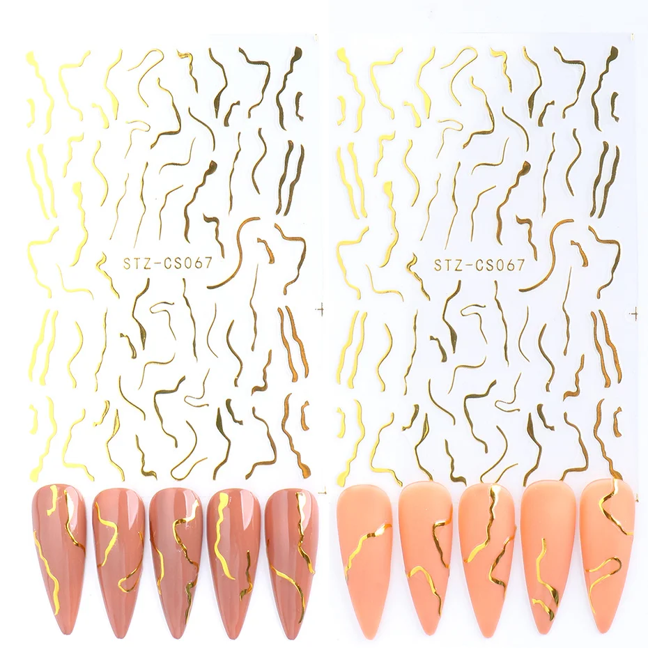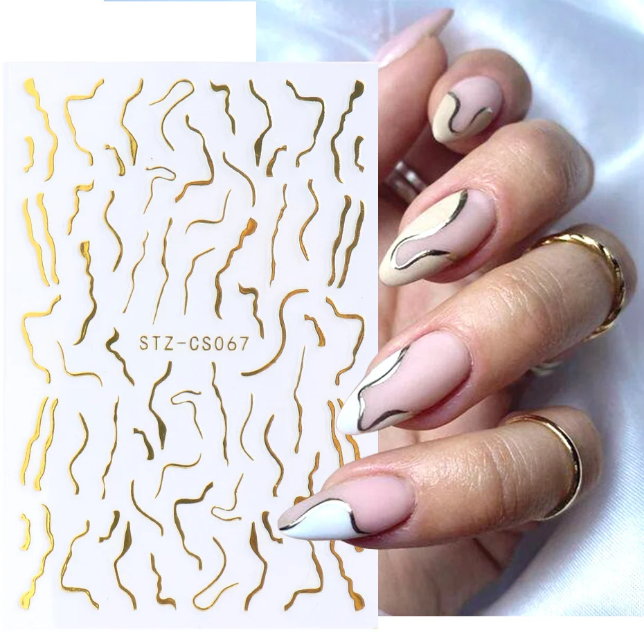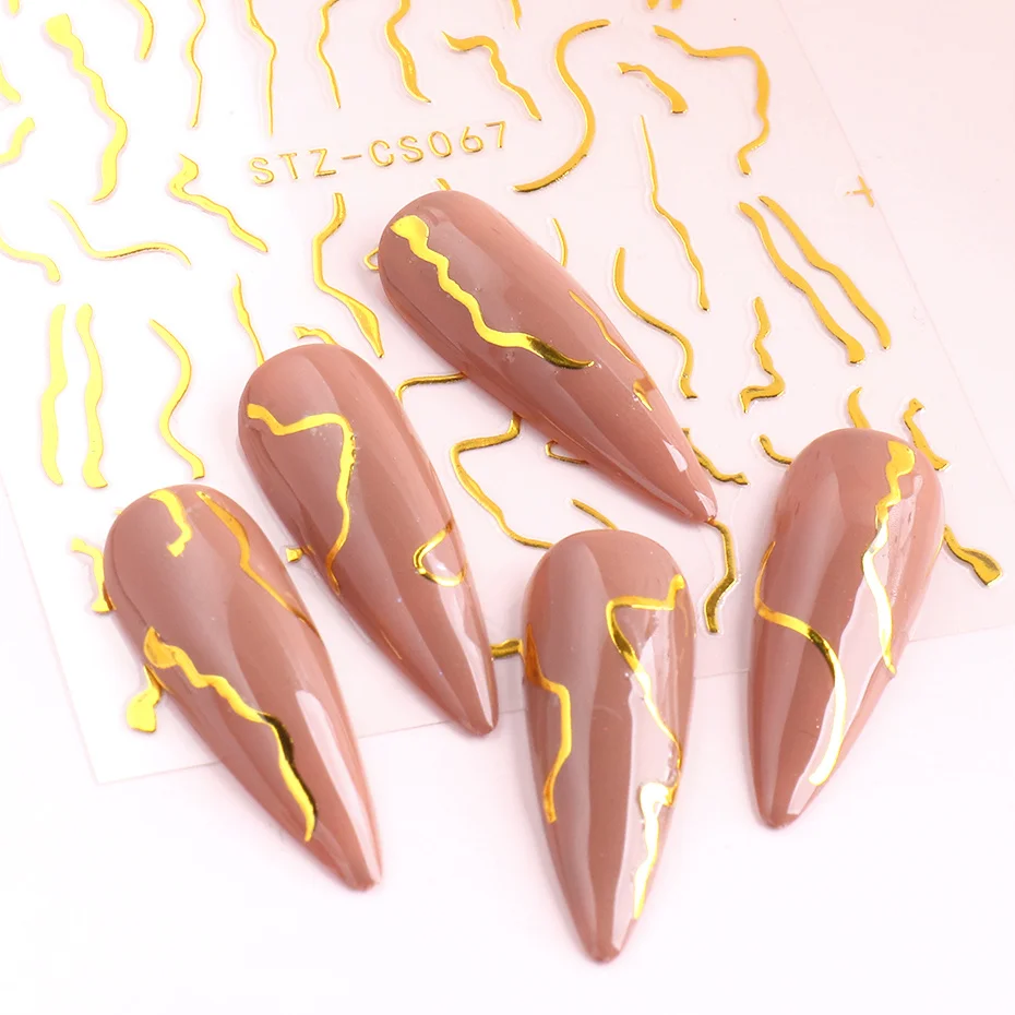 1 шт., блестящая золотая мраморная Геометрическая линия, наклейка для ногтей, простой геометрический слайдер для искусственных элементов