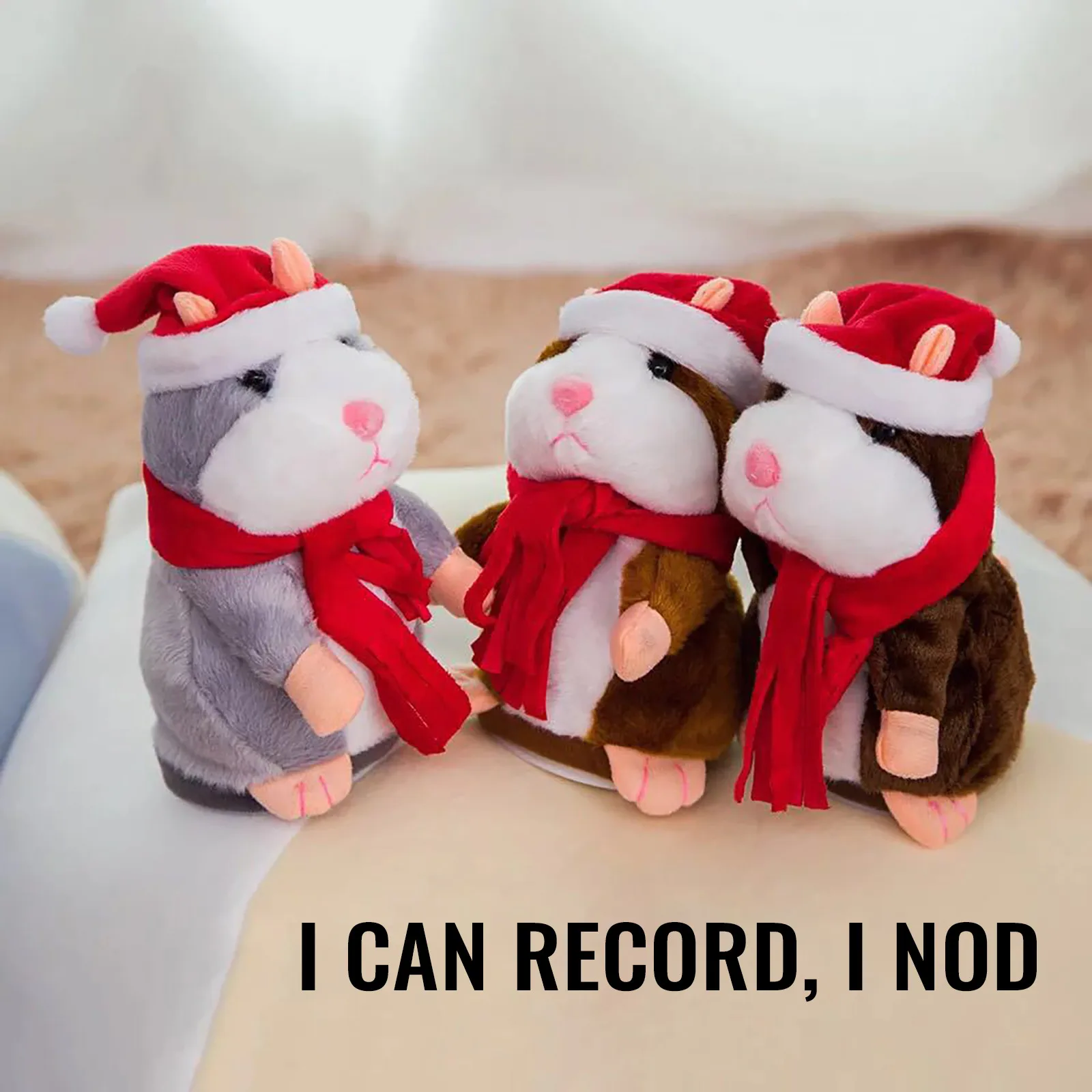 Мягкая Плюшевая поверхность и Хлопковая ткань. Отличное качество изготовления с удобной текстурой Ощущение руки. -Забавная записываемая игрушка для подражания. Хомяк повторит то, что вы Скажите или Пойте на любом языке, имитируя свой голос, просто как Забавный Флейта.