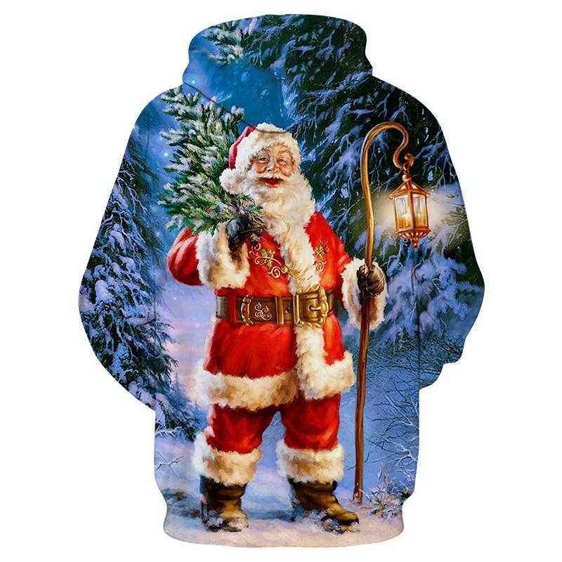 Толстовка мужская с капюшоном, свитшот с 3D принтом Санта Клауса, М...